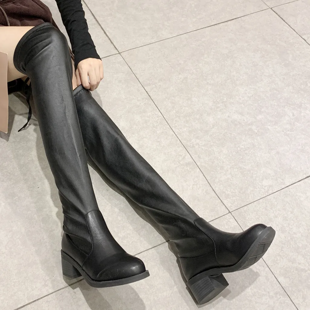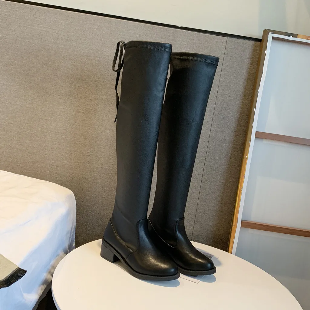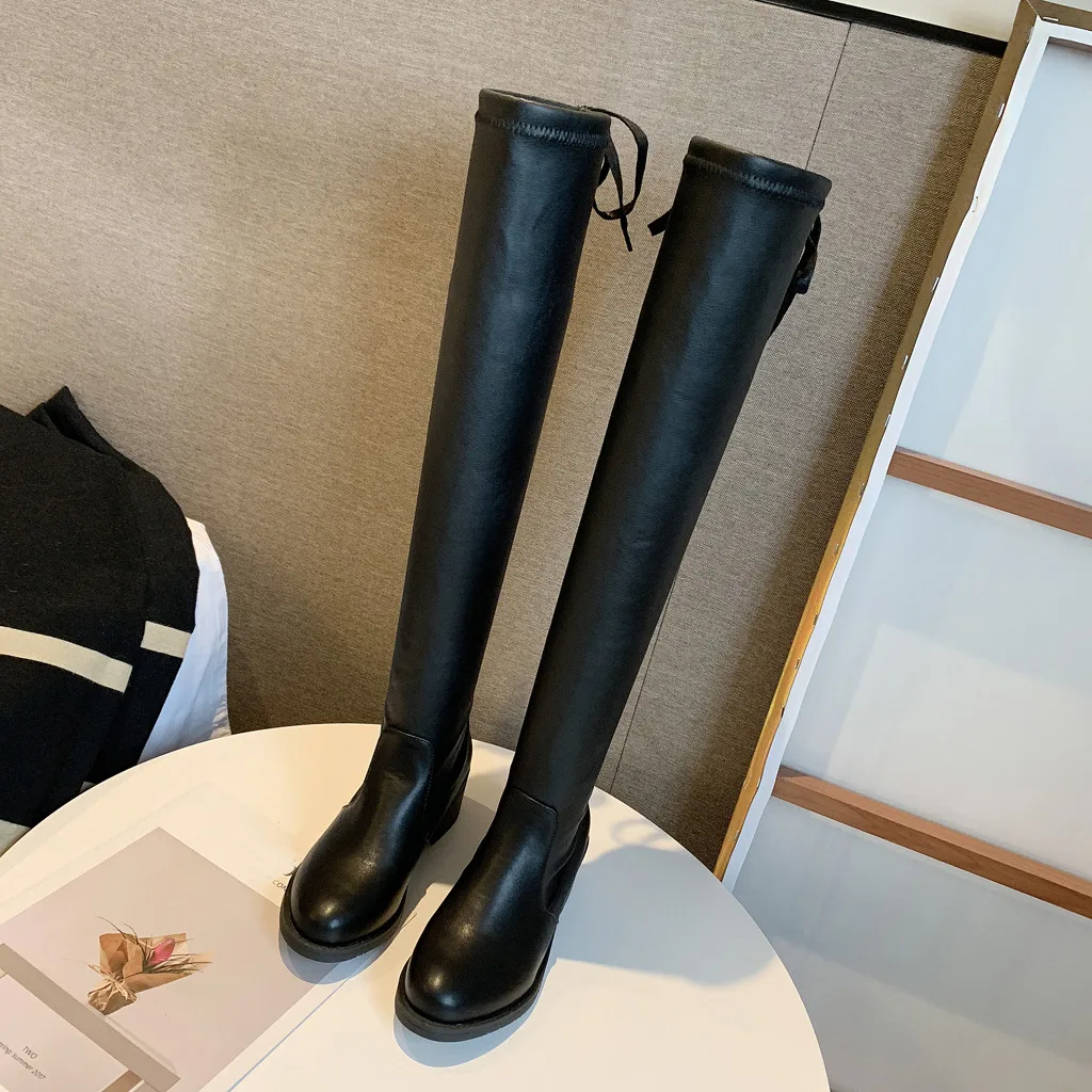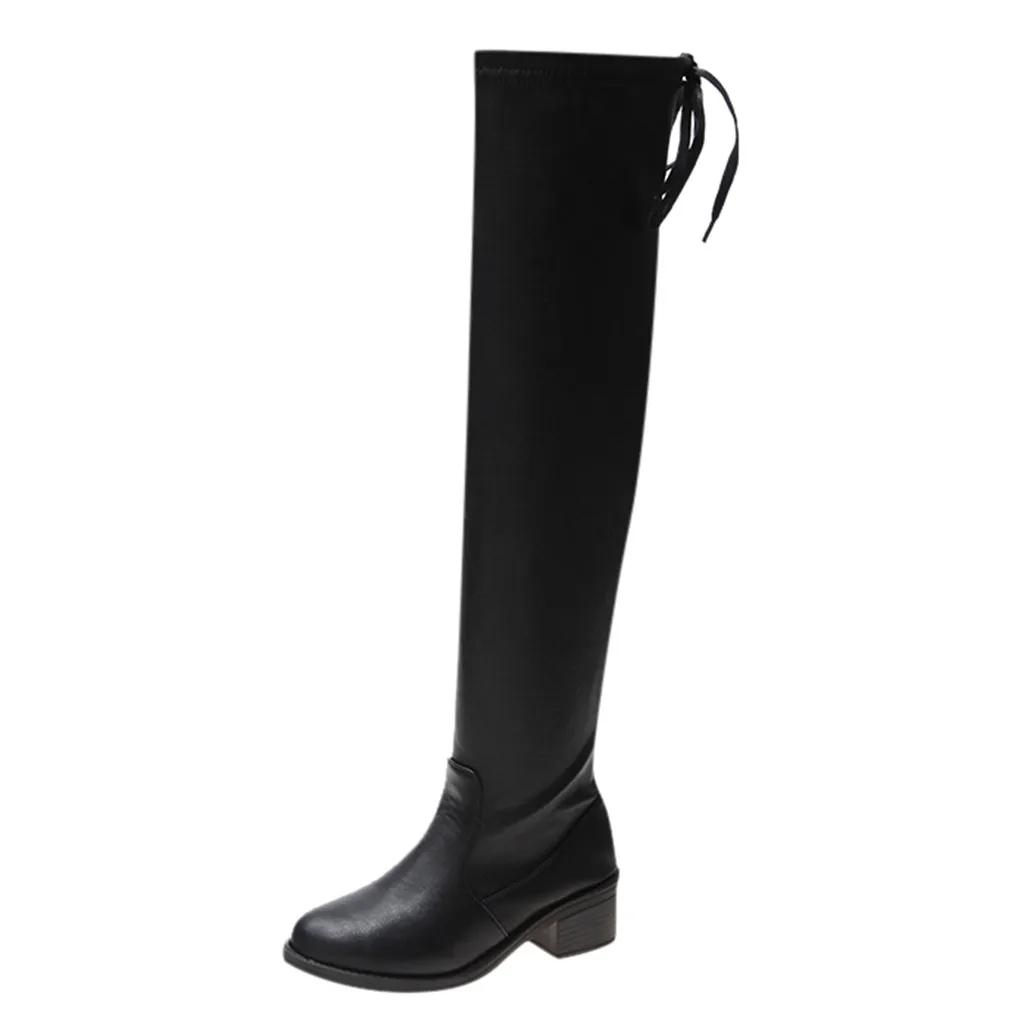 Женские сапоги; зимние высокие сапоги до колена с ремешком; Теплая обувь в ковбойском стиле