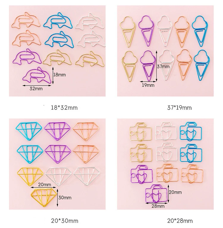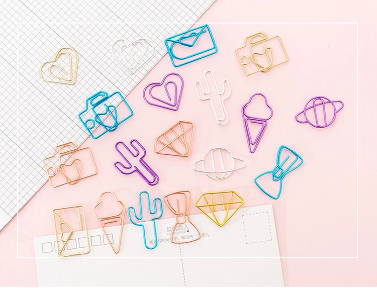 Использование: креативный зажим для бумаги Стиль: конверт, звездное небо, пентаграмма, бант, любовь, кактус, дельфин, мороженое, бриллиант, камера Размер: около 20-30 мм Упаковка: 10 шт.