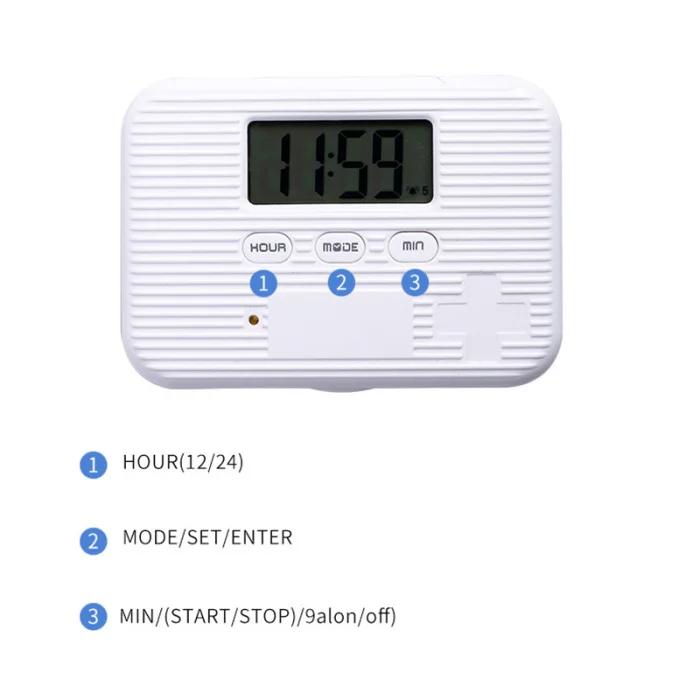 1.Умные напоминания своевременное лекарство является более беззаботным:Только 5 групп будильников, напоминания о времени, принимать лекарства вовремя, больше беспокойства, портативный интеллект прост в использовании