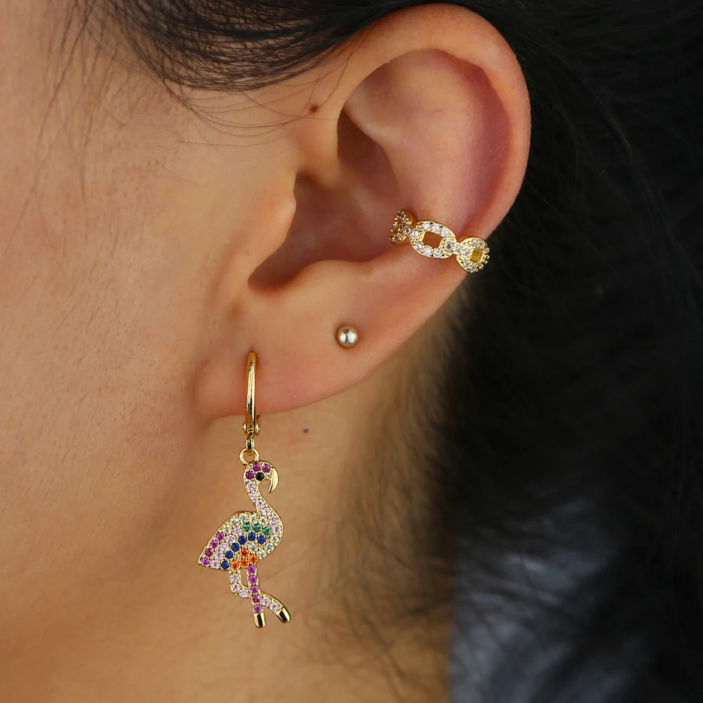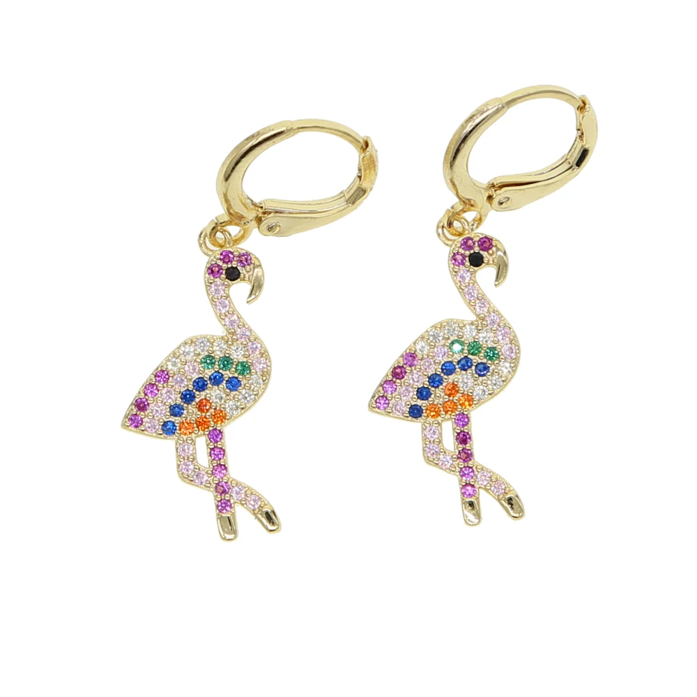 Натуральные висячие серьги с птицей фламинго, ювелирные изделия с животными, Позолоченные Разноцветные серьги с фианитами, красивые милые серьги с подвеской