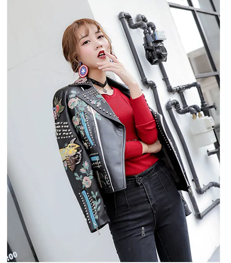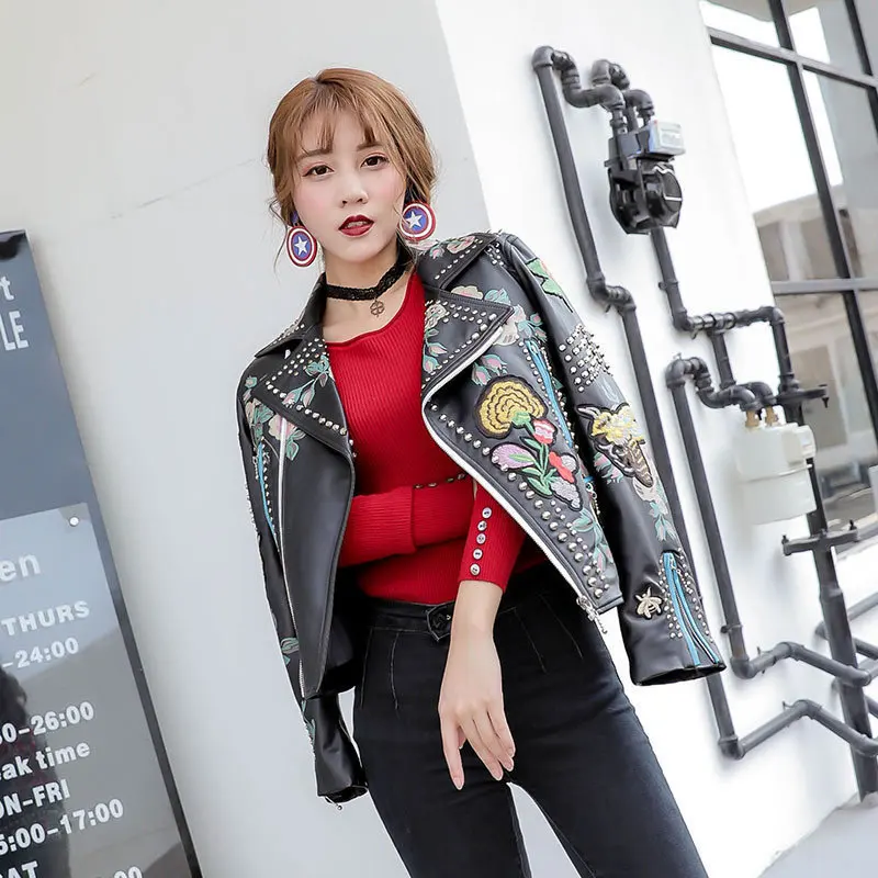 Новинка модная женская ветровка из искусственной кожи осень 2019 приталенная