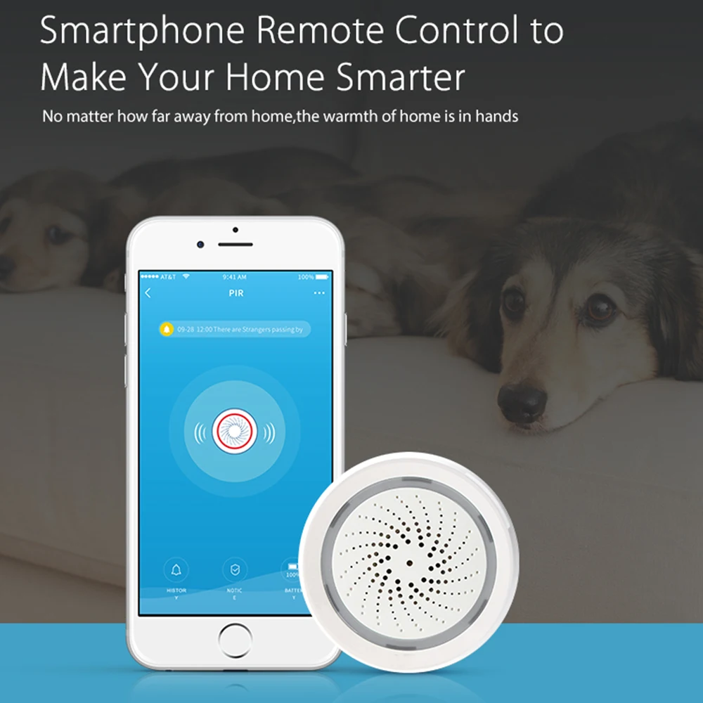 Простота в эксплуатации: Датчик сирены с небольшим размером, очень легко опера. Нет необходимости в шлюзе контроллера, Используйте приложение один ключ для сжатия