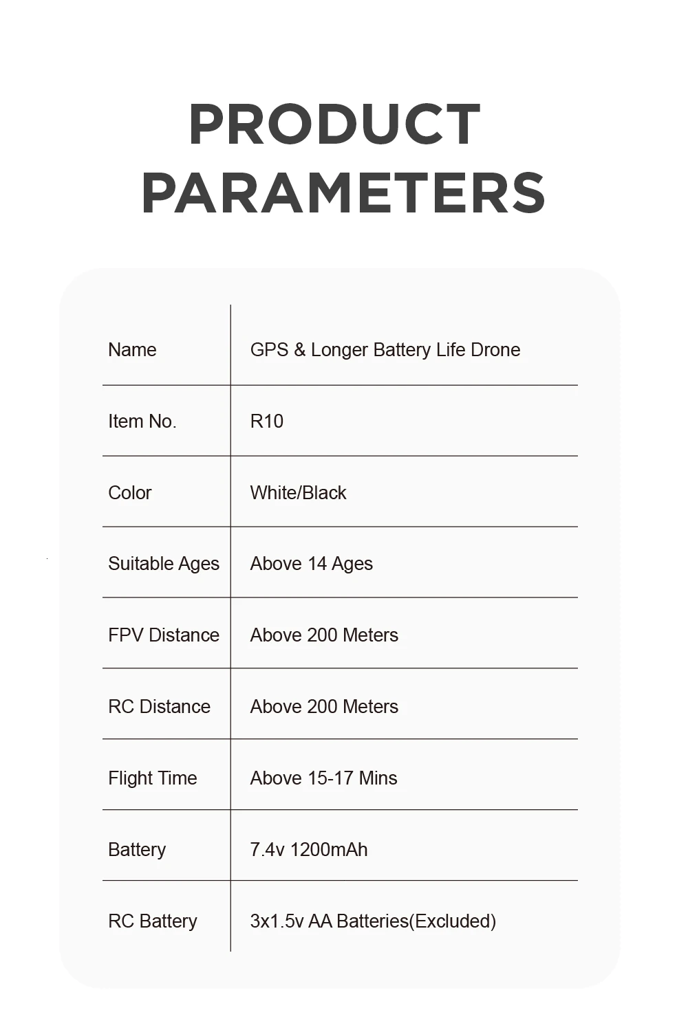 -Система позиционирования gps: предоставляет вам точные детали позиционирования вашего дрона. Встроенная функция возврата к дому (RTH) для более безопасной мухи, Дрон автоматически вернет в дом точно, когда его батарея Низкая или сигнал слабый, вы никогда не будете беспокоиться о потере дрона.