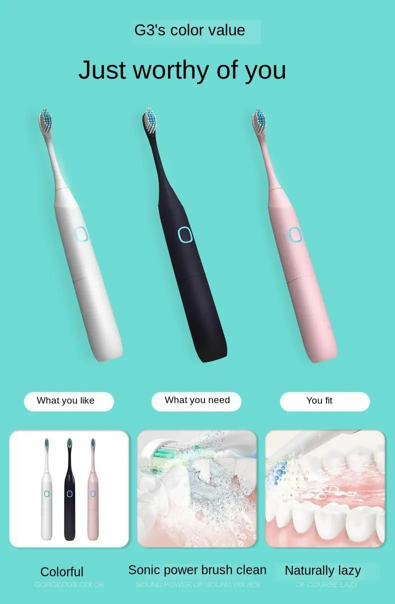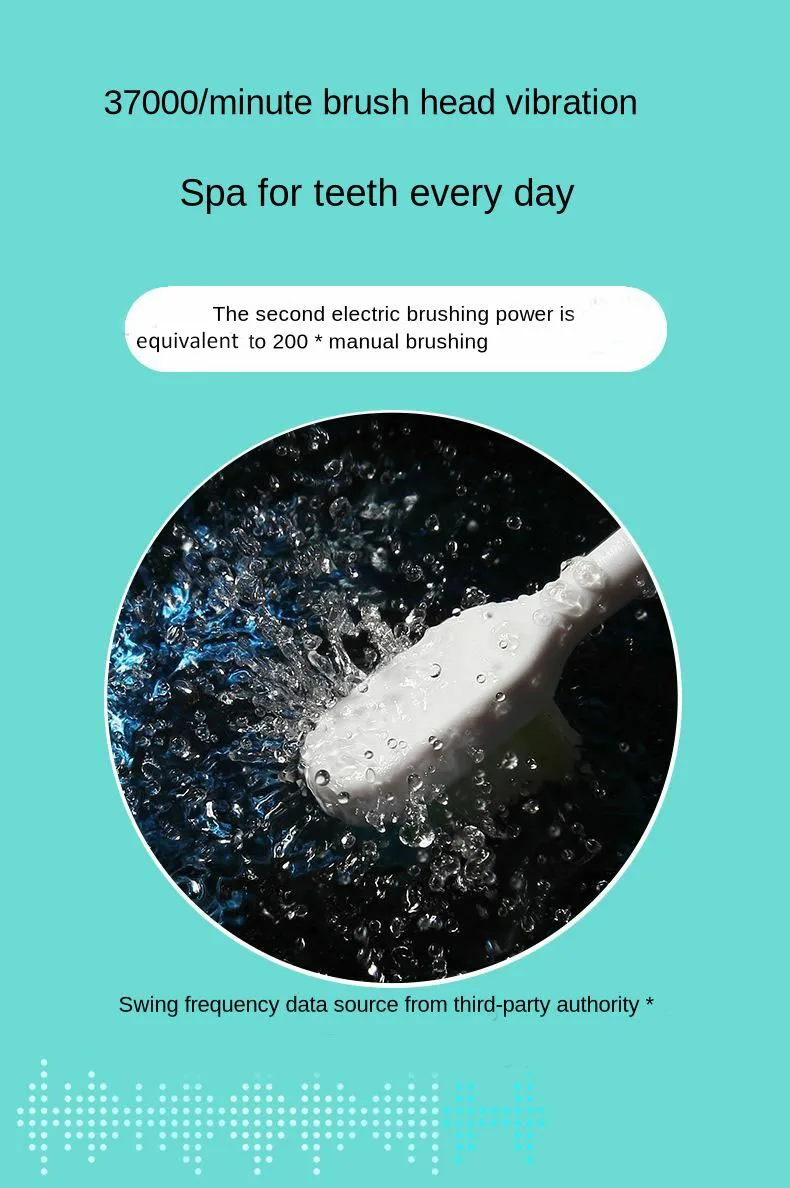 Электрическая зубная щетка, звуковая волна, перезаряжаемая, высокое качество, умный чип, головка зубной щетки, сменная, отбеливающая, здоровый, лучший подарок