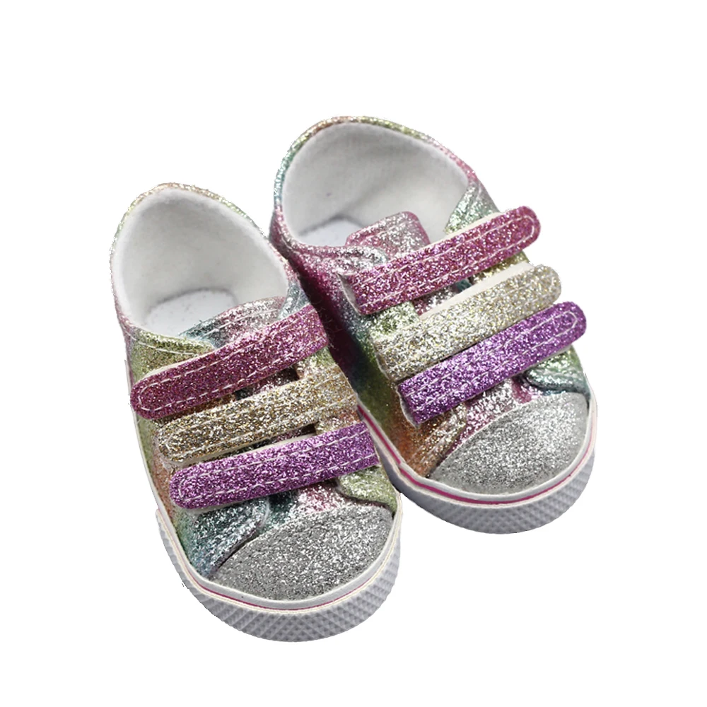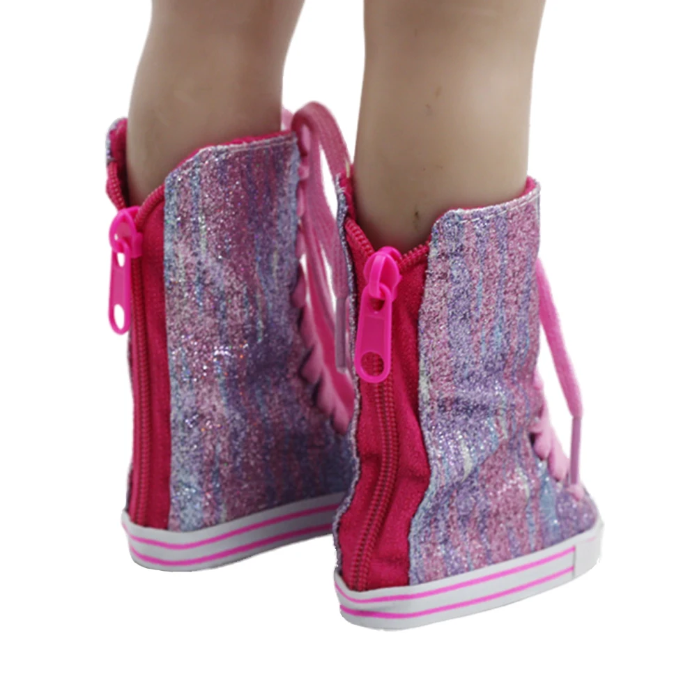 43 см обувь для кукол для новорожденных, тонкая блестящая фиолетово-синяя парусиновая обувь с высоким берцем, детские игрушки, подходят для американских 18 дюймовых кукол для девочек