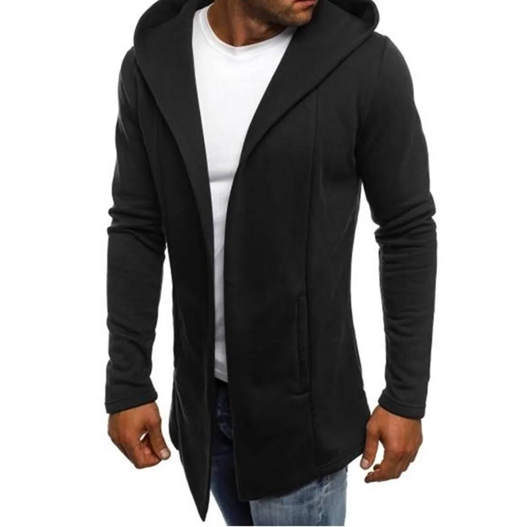 Мужской однотонный Тренч с капюшоном, куртка, Кардиган с длинным рукавом, верхняя одежда, блузка