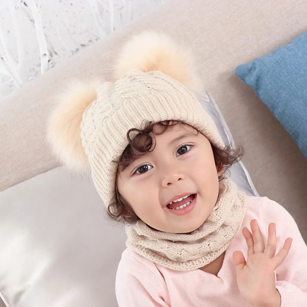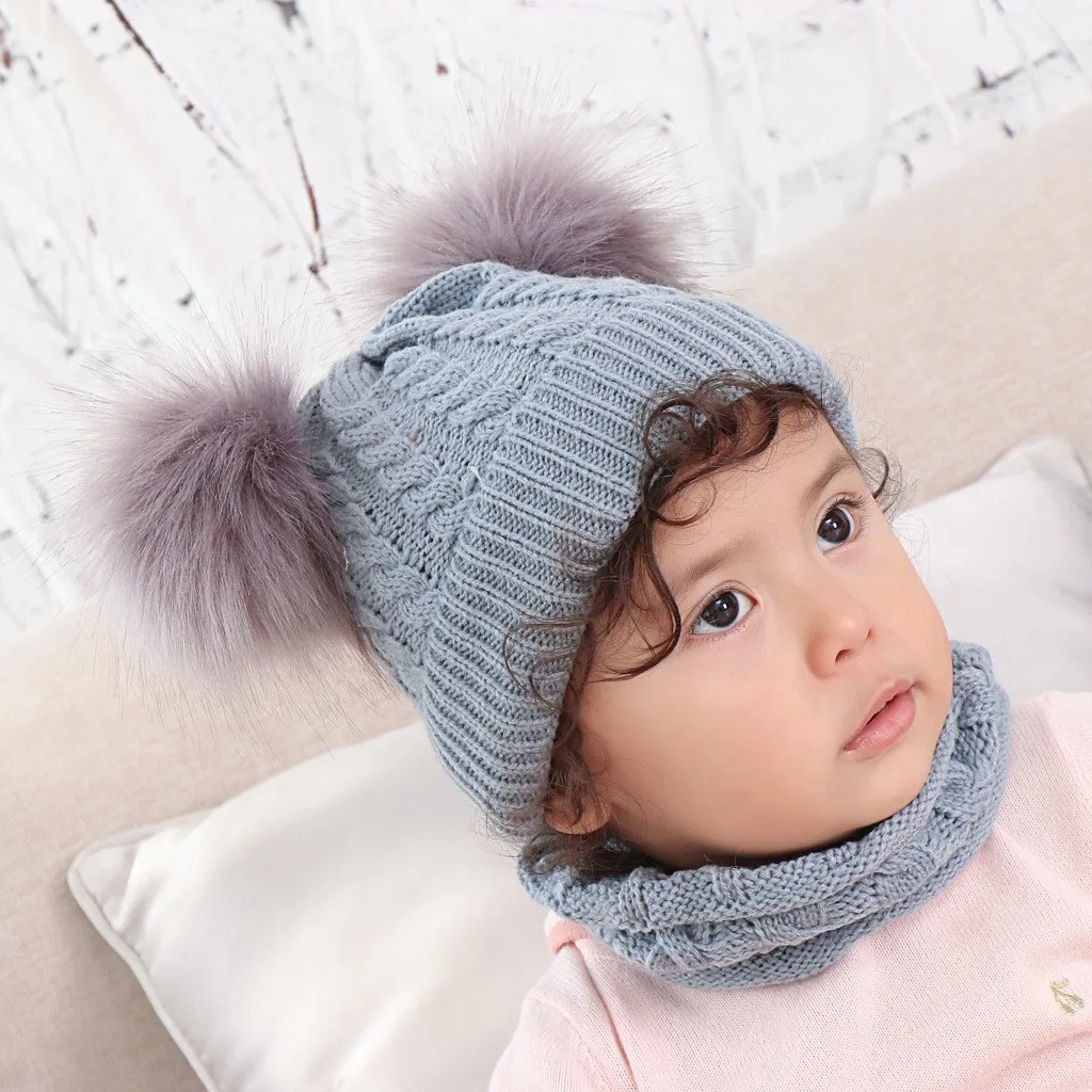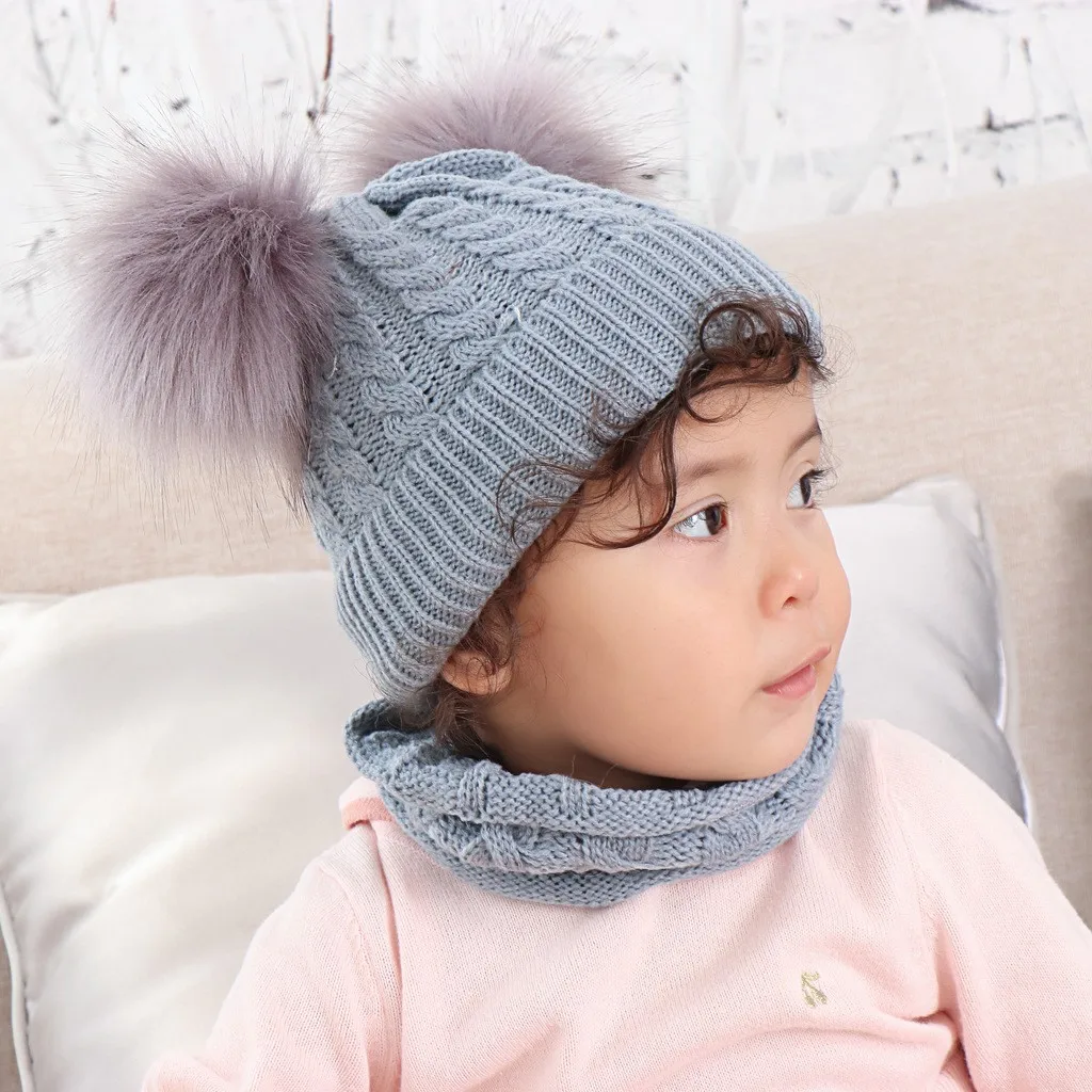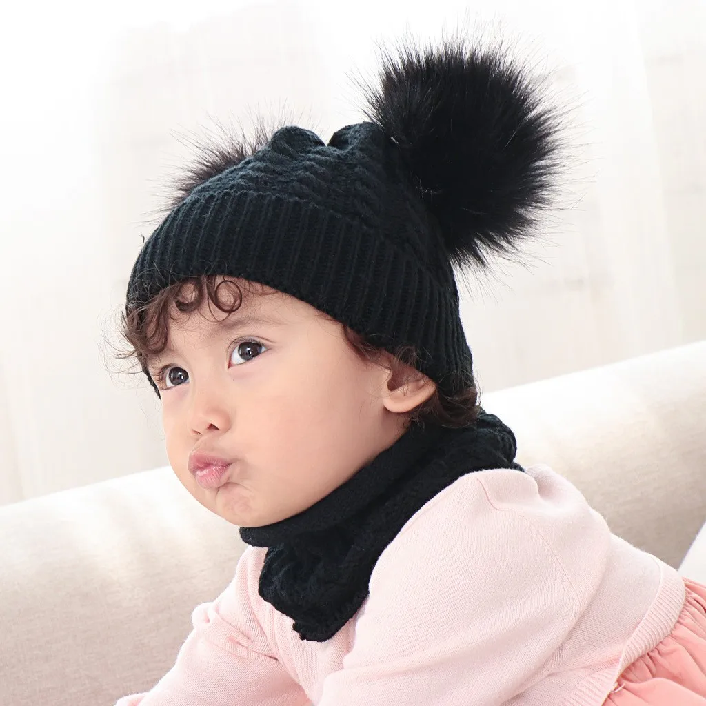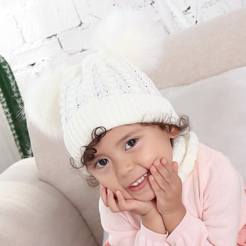 Детская однотонная зимняя теплая вязаная шапка, шарф, шапка, костюм