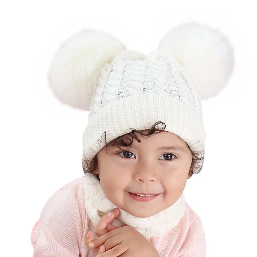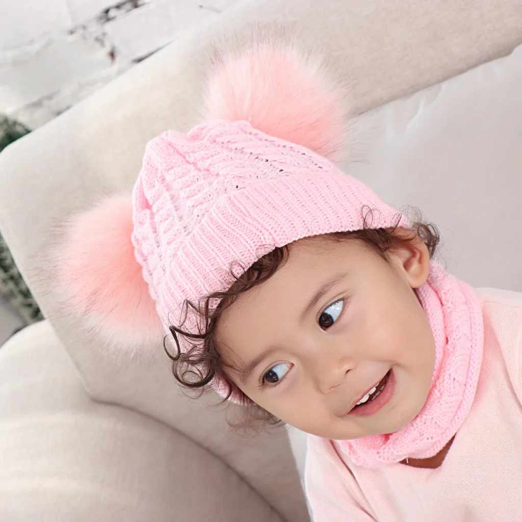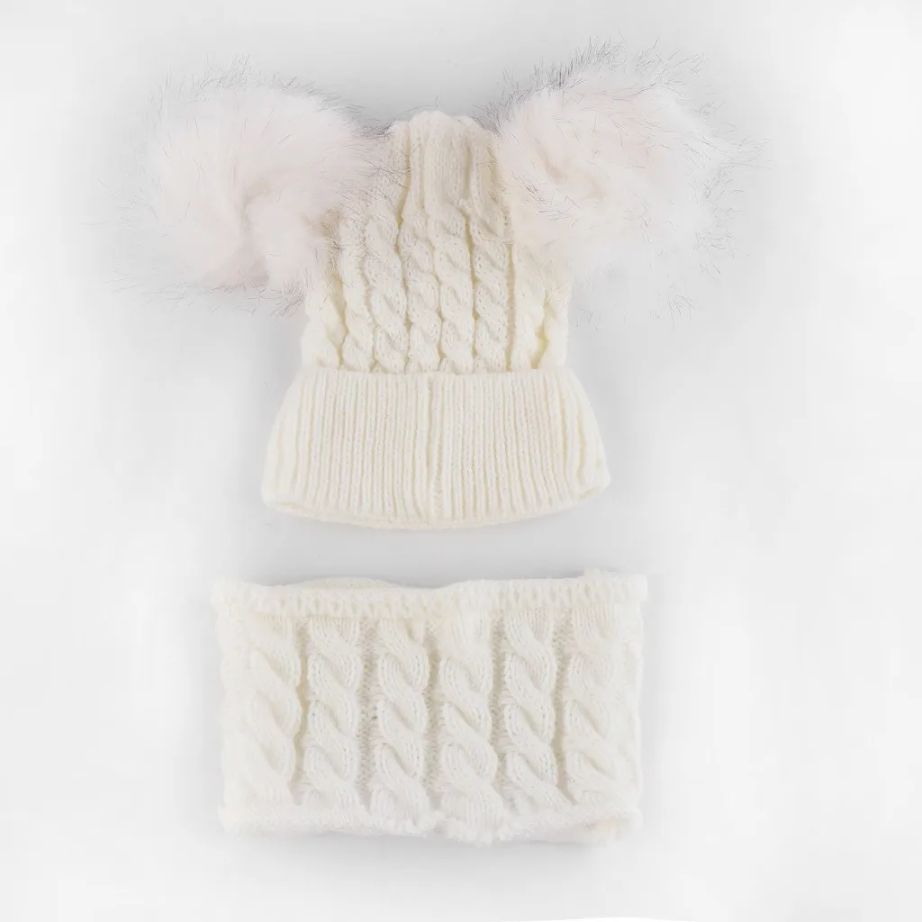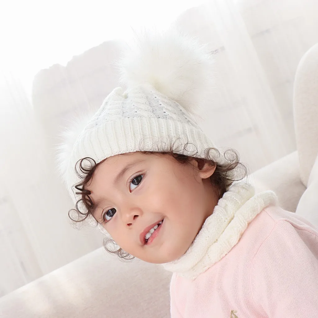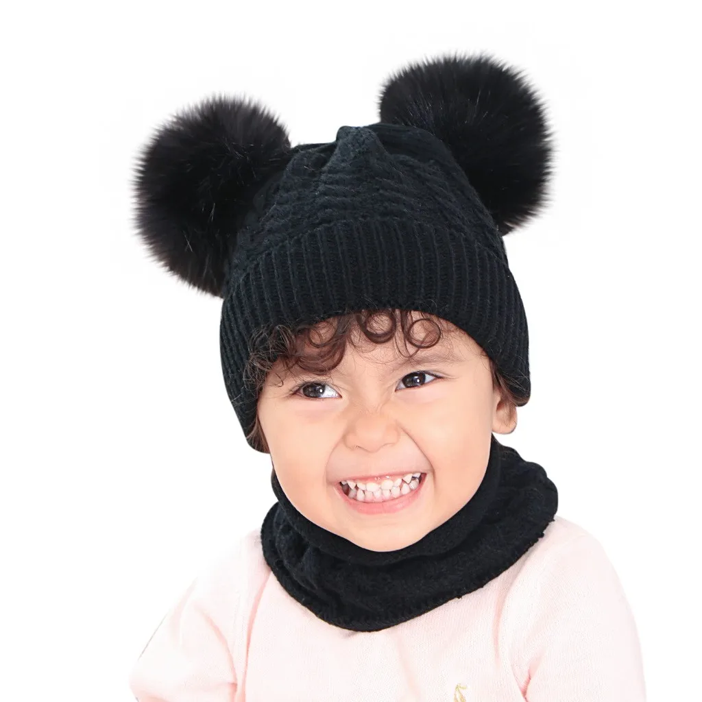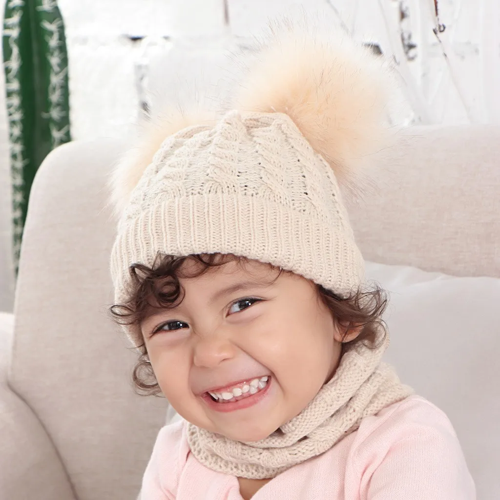 Детская однотонная зимняя теплая вязаная шапка, шарф, шапка, костюм
