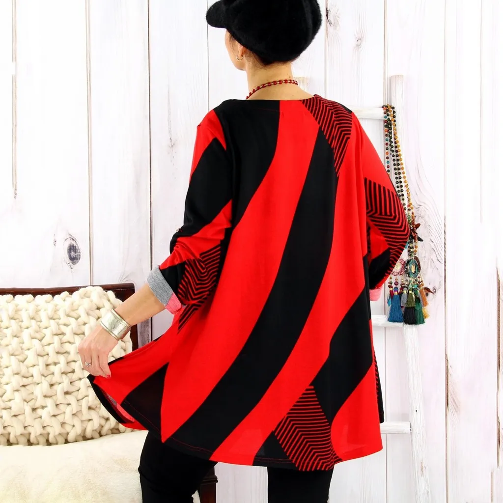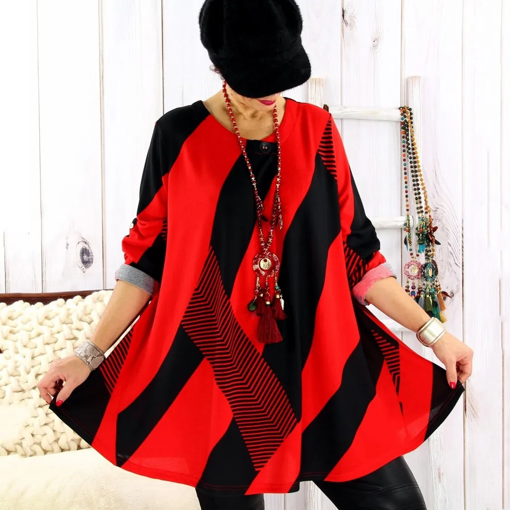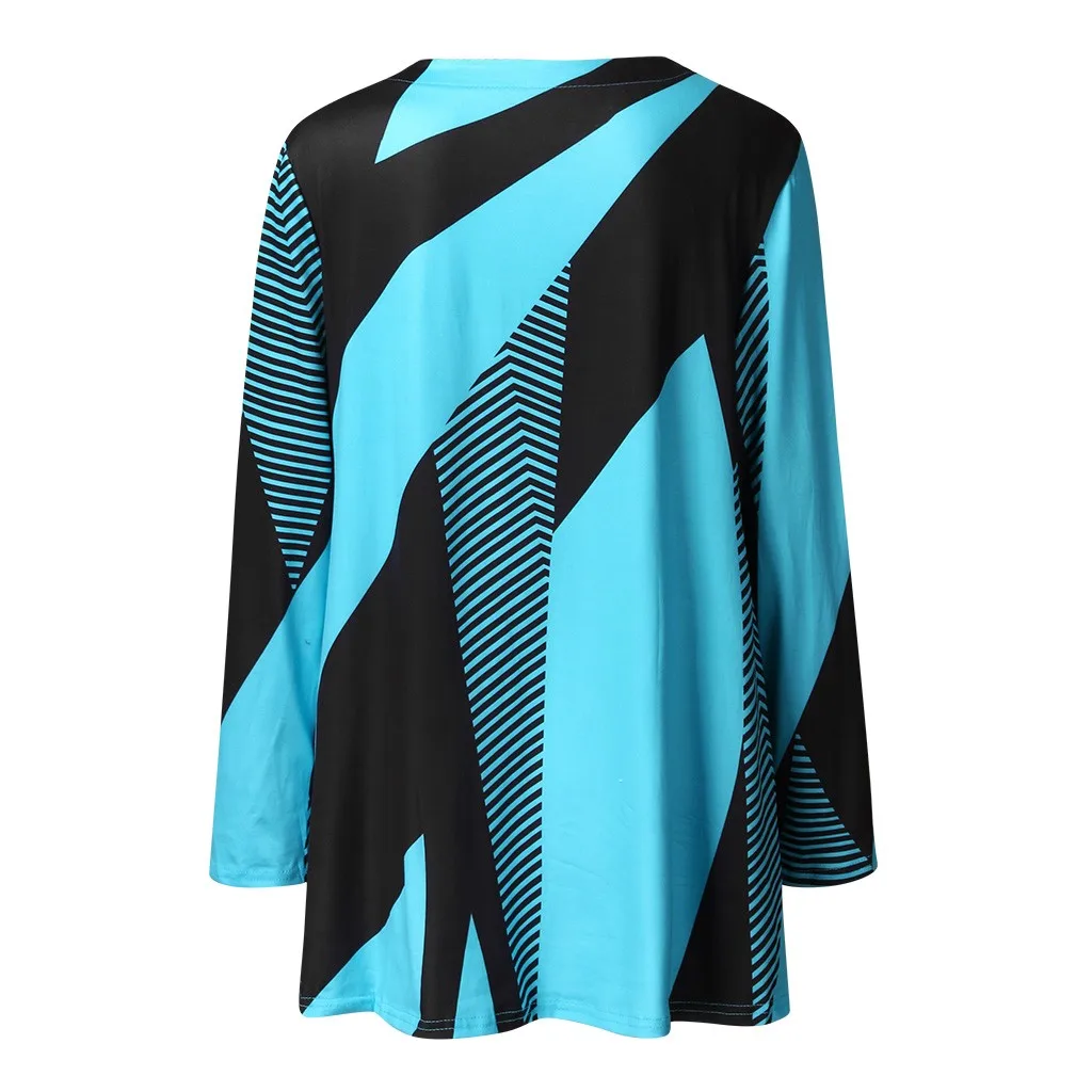 Для женщин; Большие размеры Повседневное в ретро-стиле, в полоску, с принтом, с длинными свободными рукавами рукав Футболка Блузка