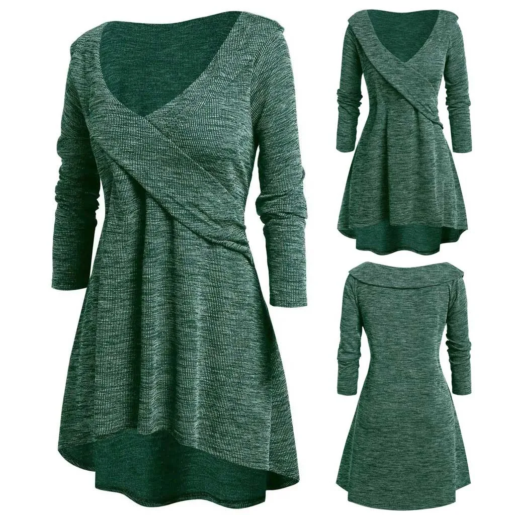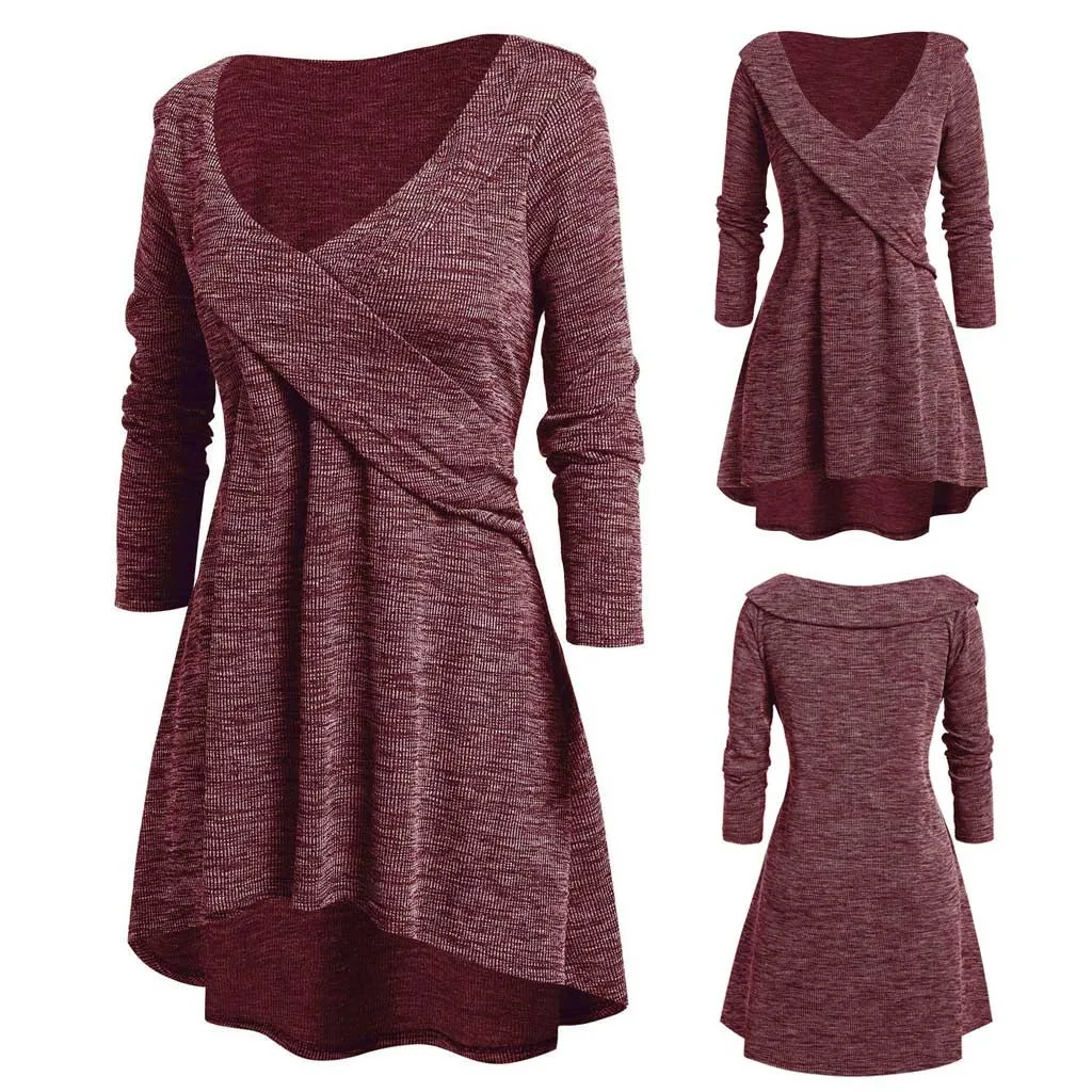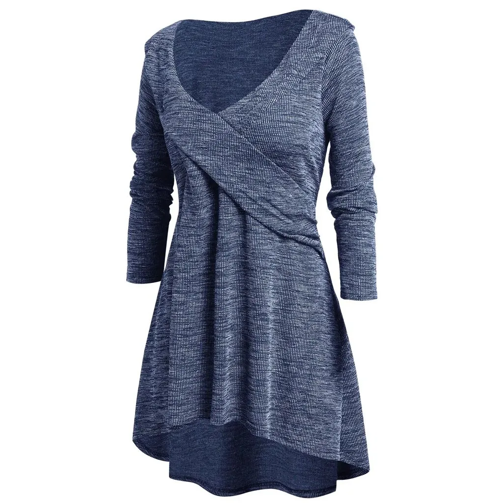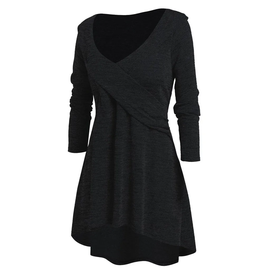 Женские топы большого размера с длинным рукавом и V-образным вырезом