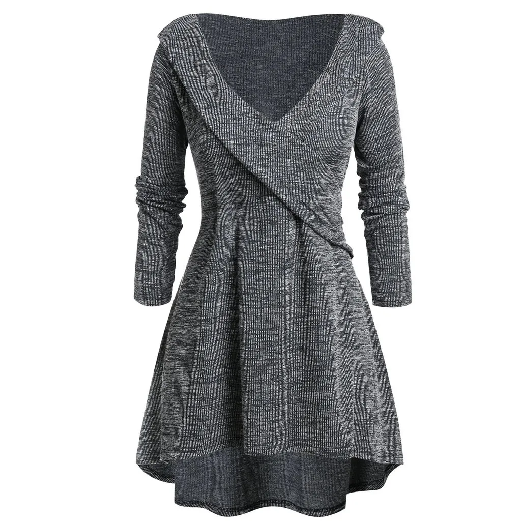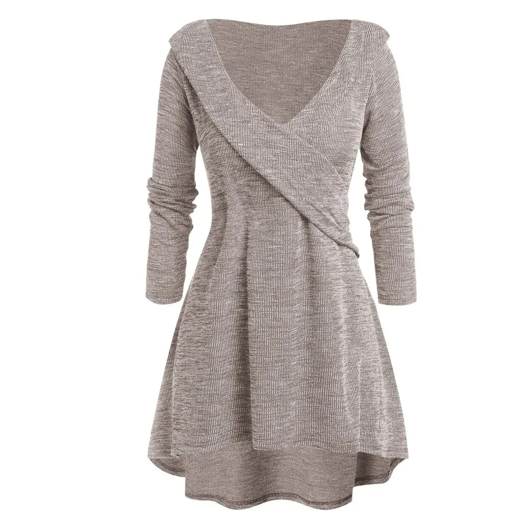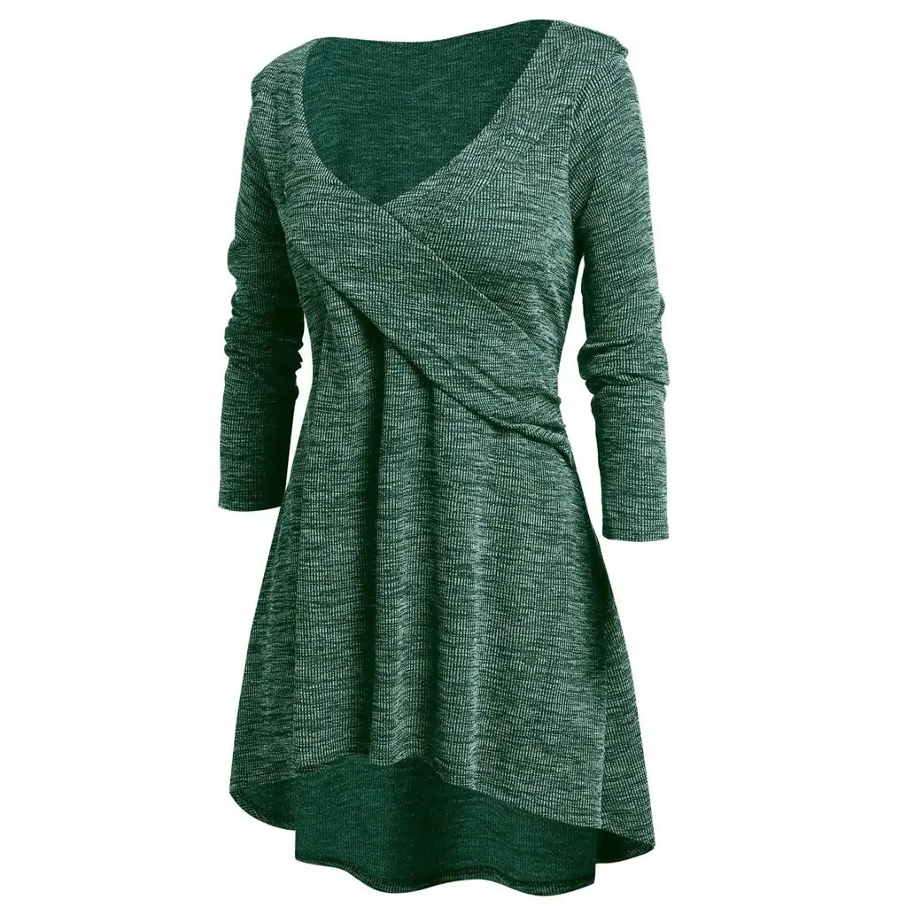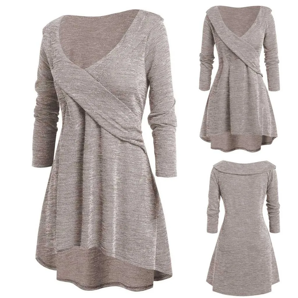 Женские топы большого размера с длинным рукавом и V-образным вырезом