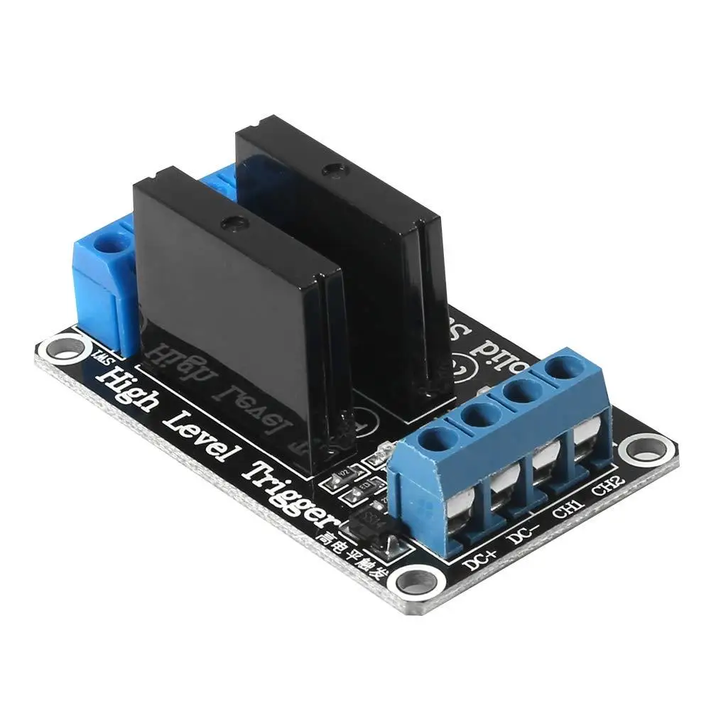 2 канальный твердотельные реле постоянного тока при напряжении от 5 в 2A Триггер Высокий уровень черного цвета для Arduino Uno Duemilanove MEGA2560 MEGA1280 ARM DSP PIC
