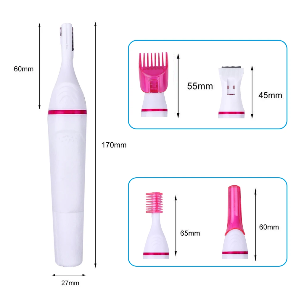 Удалите нежелательные волосы с лица, бровей, декольте, ушей, зоны бикини. Безопасен для использования на чувствительной коже. Отлично подходит для путешествий или дома. Храните один в сумке или офисном ящике для удобства использования.