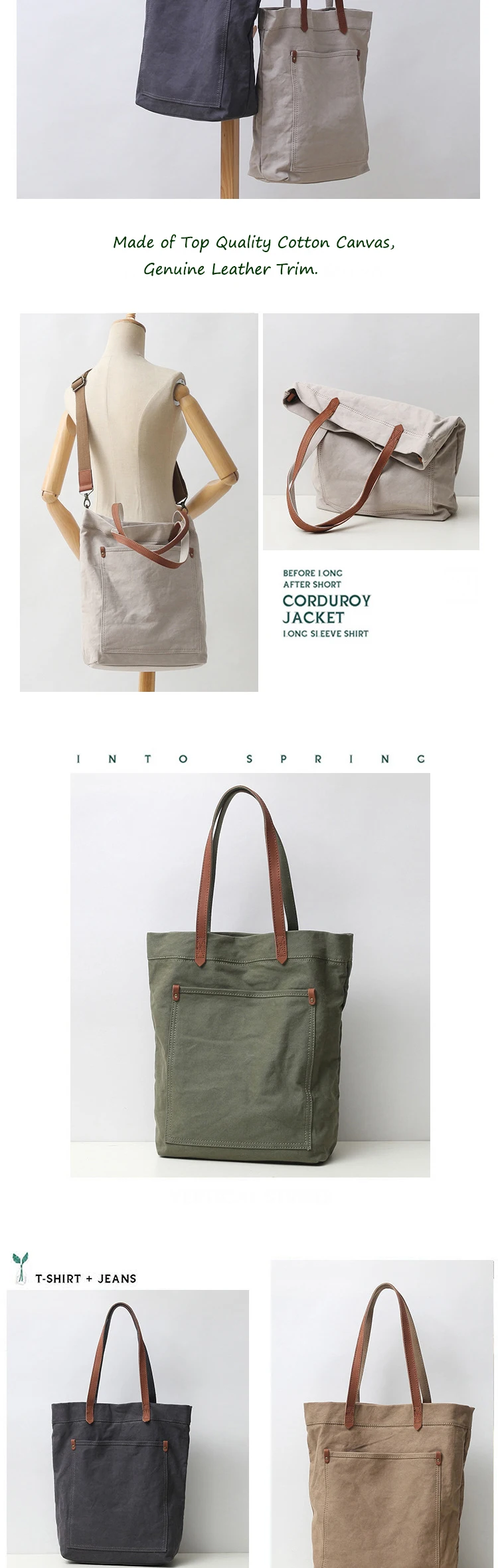 Высококачественная Модная хлопковая Холщовая Сумка через плечо для женщин, роскошный дизайн, удобная на ощупь, долговечная и долговечная вместительная сумка-шоппер со съемным и регулируемым широким ремешком для сумки через плечо из натуральной кожи в корейском и японском стиле универсальная сумка для путешествий для мужчин и женщин
