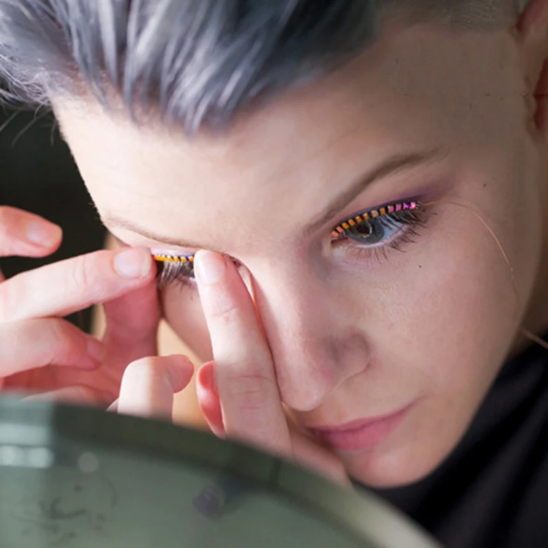 Просто используйте клей для ресниц и Наклейте его на свое век. Уникальный зажим можно прикрепить за голову или одежду.
