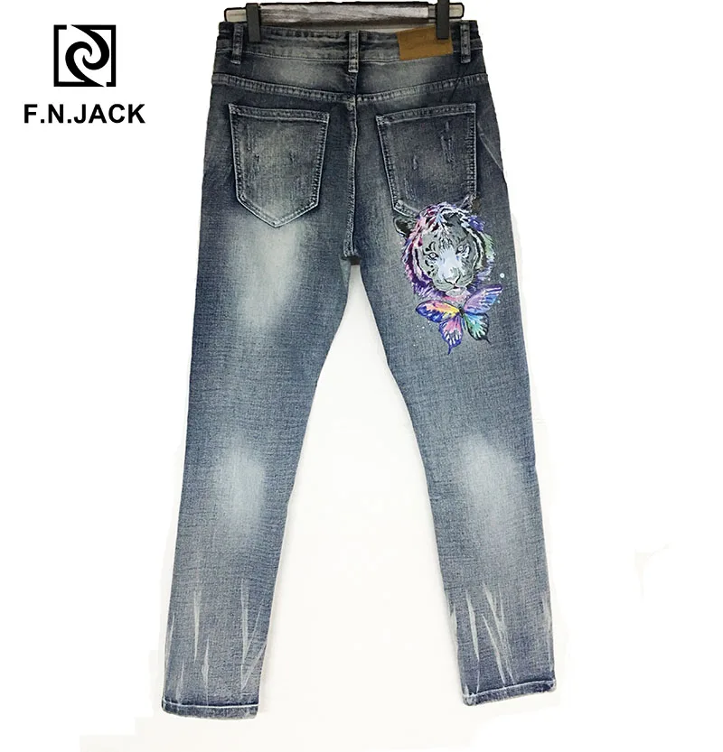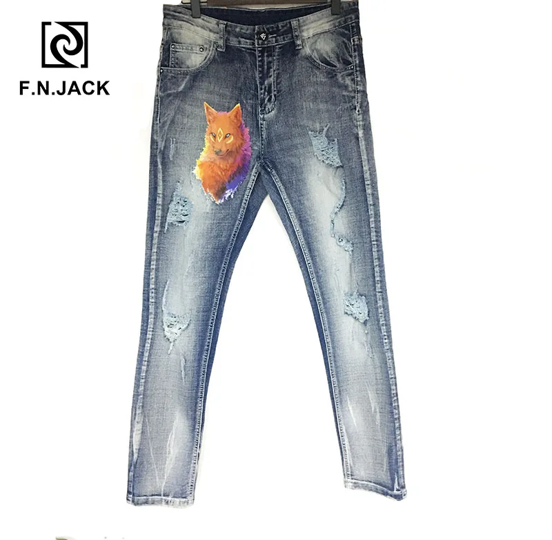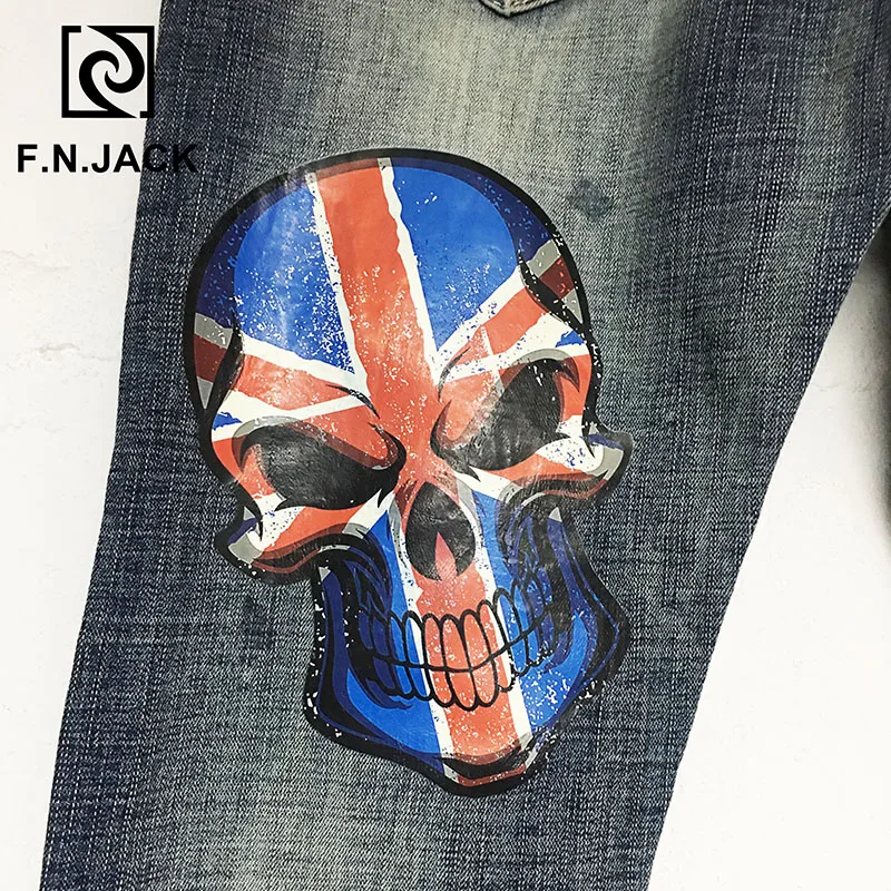F.N.JACK мужские джинсы крутой парень тонкие прямые полная длина на молнии летающие