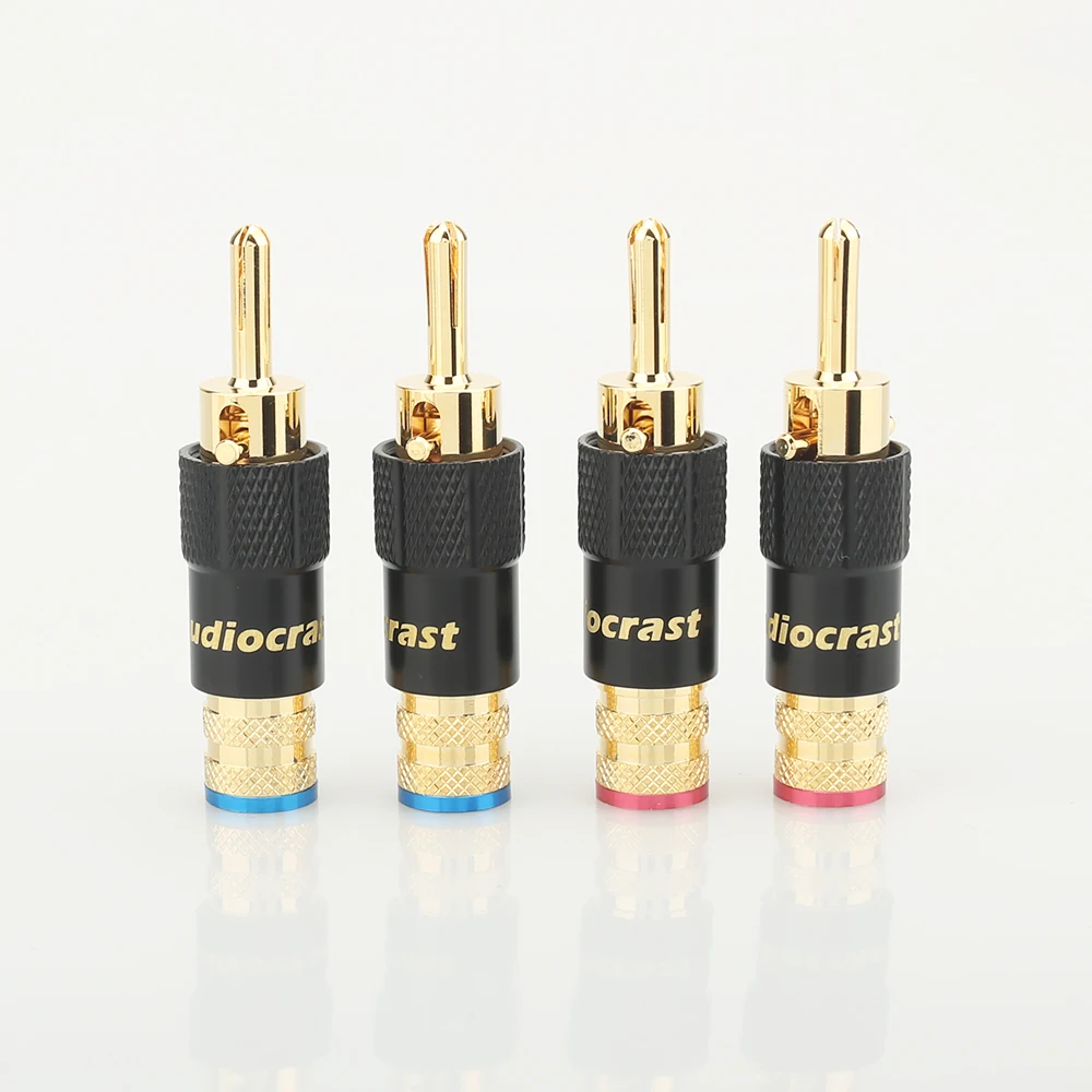 4xAudiocrast 24K Gold Plated Audio Banana Speaker Plug Screw Locking 10mm Cable Wire Connector Speaker Cable Plug HIFI Diy