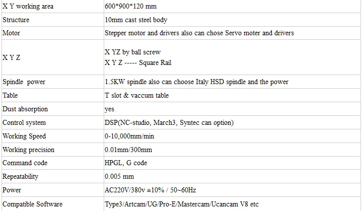 --------------------Характеристики продукта маршрутизатора с ЧПУ 6090
