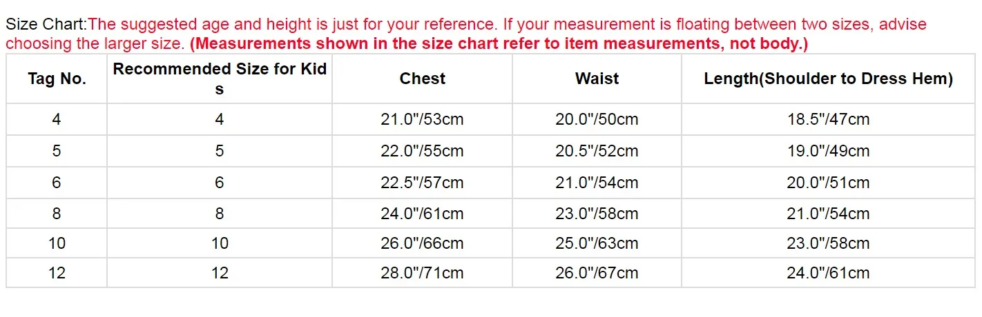 | Размер на бирке. | Рекомендуется Размеры для детей | Обхват груди | Обхват талии | Длина (от плеча до подола) |