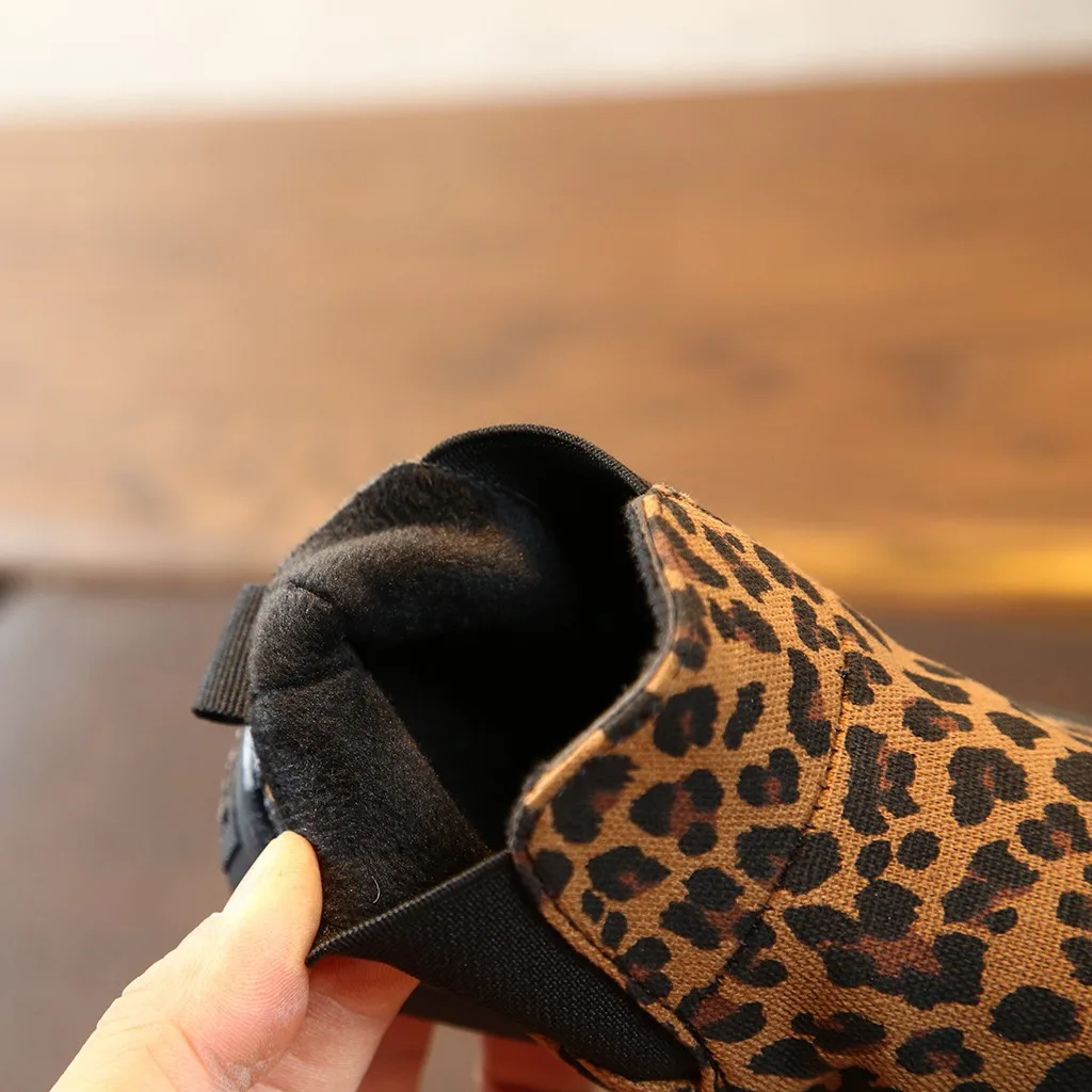 ДетиЗимние теплые короткие ботинки с леопардовым принтом для маленьких мальчиков и девочек; Повседневная обувь