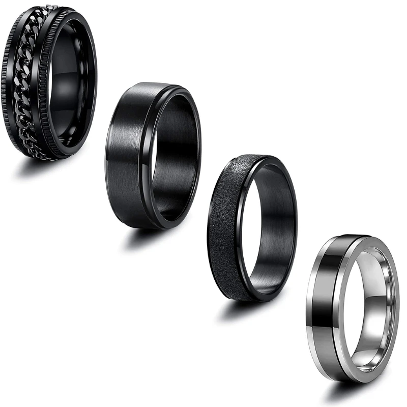 4 шт., черные кольца для колец в разных стилях, Мути-стиль для повседневного ношения, набор экономичных колец.