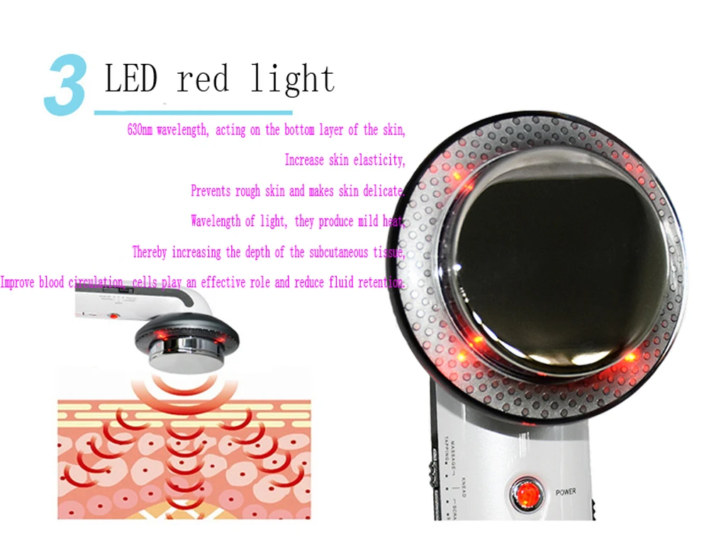 Особенности: Уход за кожей удаляет, осветляет и разглаживает внешний вид кожи. Глубокое очищение и увлажнение для уменьшения появления морщин и жировых отложений и твердой текстуры кожи. Устройство использует ультразвук 1 МГц и инфракрасную энергию для эффективного массажа и лечения, а также через ультразвуковой массаж для похудения для формирования контуров тела, устранения лишнего жира, кондиционирования мышц, восстановление здоровых функций организма через регенерацию клеток и обмен веществ в организме. Прибор может выполнять ультразвуковое, инфракрасное и микротоковое лечение кожи и тела. Ультразвуковая терапия: Массажный зонд производит ультразвуковую вибрацию со скоростью 1000000 раз в секунду, которая лучше всего подходит для ухода за телом и влияет на кожу в основном двумя способами: механический и тепловой (физический) И химического вещества. Тепловая терапия: квадратный ошейник вокруг массажного зонда излучает инфракрасный светильник в спектре 8-12 нм, который может проникать глубоко в кожу и подкожную клетчатку. Параметры: Входная мощность адаптера: AC100-240V Выходная мощность адаптера: 15 В, 800 мА Ультразвуковая частота: 1 МГц Посылка: косметический инструмент-1 шт., соединительный провод-1 шт., адаптер питания-1 шт., руководство-1 шт., 2 пары электродных подушек Технология: EMS + инфракрасный + Ультразвуковой Ультразвуковой массаж удаляет жир и оттягивает кожу без отскока. Инфракрасные лучи восстанавливают эластичность и более тщательно активируют клетки. EMS 5 режимов (кран, массаж, разминание, соскабливание cr, потеря веса), 5 вариантов прочности, свободный выбор, чтобы вы чувствовали себя комфортно. Примечание: ультразвук и дальние инфракрасные лучи подарят вашей коже ощущение тепла. Это нормальное явление. Пожалуйста, не стесняйтесь использовать его.