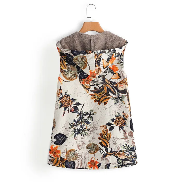 Тип одежды: женская зимняя куртка с капюшоном и принтом без рукавов; теплая и удобная плюшевая куртка