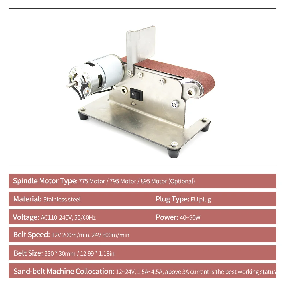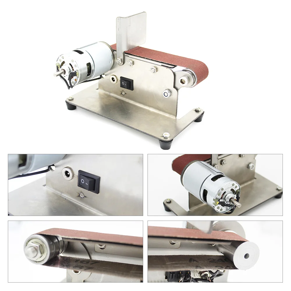 Это многофункциональный ленточный шлифовальный станок, мини портативный, низкий уровень шума, может использоваться для высокоскоростного стального сверла грубого шлифования, кромки лезвия, тонкого шлифования вольфрамовой стали токарного инструмента, полировки корень дерева Бодхи и т. Д., простой в установке и эксплуатации, это домашний инструмент DIY.