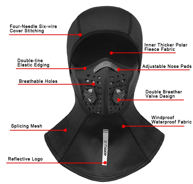 1. Плотная теплая флисовая ткань, обладает эластичностью и текстурой, мягкая, удобная. 2. Предназначен для максимальной защиты от экстремальных холодов 3. Отверстия на рту и носу позволят вам легко дышать 4. Ветрозащитный, пыленепроницаемый, сохраняет тепло и комфорт 5. Многофункциональные можно носить как маску для лица или шляпу, открытую Балаклаву, шею гетры или сахарский стиль и ниндзя балахон. 6. Функция полного покрытия, которая отлично защитит ваши уши, рот, нос и шею. На верхней части маски используется дышащая ткань, чтобы сохранить ее сухой даже при носке шлема. 7. Подходит для осенних и зимних походов, кемпинга, походов, катания на лыжах, велоспорта и других видов спорта