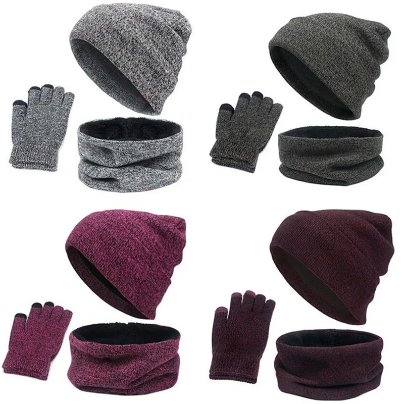 Теплый костюм на осень и зиму, шапка + шарф + перчатки, вязаный комбинированный костюм