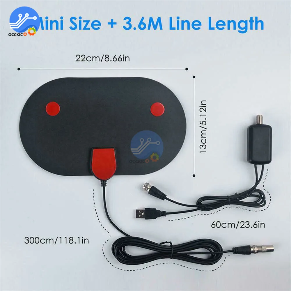 Параметры: 1. Рабочая частота: VHF (170-240 МГц) / UHF( 470-860 МГц) 2. VSWR: 1,5 3. Импиденция: 75 4. Коэффициент усиления LNA: 25 дБ 5. Диапазон приема: 980 миль (макс.) 6. Размер: 335x235x0,6 мм 7. Цвет: черный 8. Кабель: 1.5с-2 в/длина = 3 м 9. Разъемы: Универсальные 10. Поляризация: линейный 11. Напряжение: 5V 12. Разъем питания: USB 13. Рабочая температура: -45 ~ 85 14. Температура хранения: -45 ~ 85 15. Совместим с 720p, 1080i, 1080p/ ATSC Комплект разработчика по: Шаг 1: Подключите конец прилагаемого коаксиального кабеля к разъему ANT/IN на задней части телевизора или цифрового конвертера, подключите вилку USV к usb-порту телевизора или цифровой конверсионной коробки. Шаг 2: Держите антенну в руке, рядом с окном, поместите ее горизонтально или вертикально. Шаг 3: в меню настройки телевизора или STB установите режим тюнера на «антенну» или «воздух» для получения более подробной инструкции, пожалуйста, обратитесь к Руководству по телевизору. Шаг 4: в меню настройки телевизора или STB Установите телевизор на «scan» для каналов. Иногда это может быть указано как автоматическая программа, автоматическое сканирование, поиск каналов или сканирование каналов. Проконсультируйтесь с руководством по телевизору или детальными инструкциями. Шаг 5: если прием является спорадическим, попробуйте перемещать антенну в другое место и повторно использовать телевизор до тех пор, пока не будет найдено оптимальное состояние. Шаг 6: Закрепите антенну в оптимальном положении. Регулировка направления антенны Подключите антенну к телевизору должным образом. Установите режим ТВ в режим антенны. Когда качество сигнала низкое, отрегулируйте расположение антенны или поверните ее в сторону телевизионной станции. Вы можете смотреть чистую телевизионную программу до тех пор, пока качество сигнала не улучшится. Pacakge Содержание: 1x960 миль ТВ антенна 1 x усилитель сигнала (опционально) 1 х Универсальный разъем
