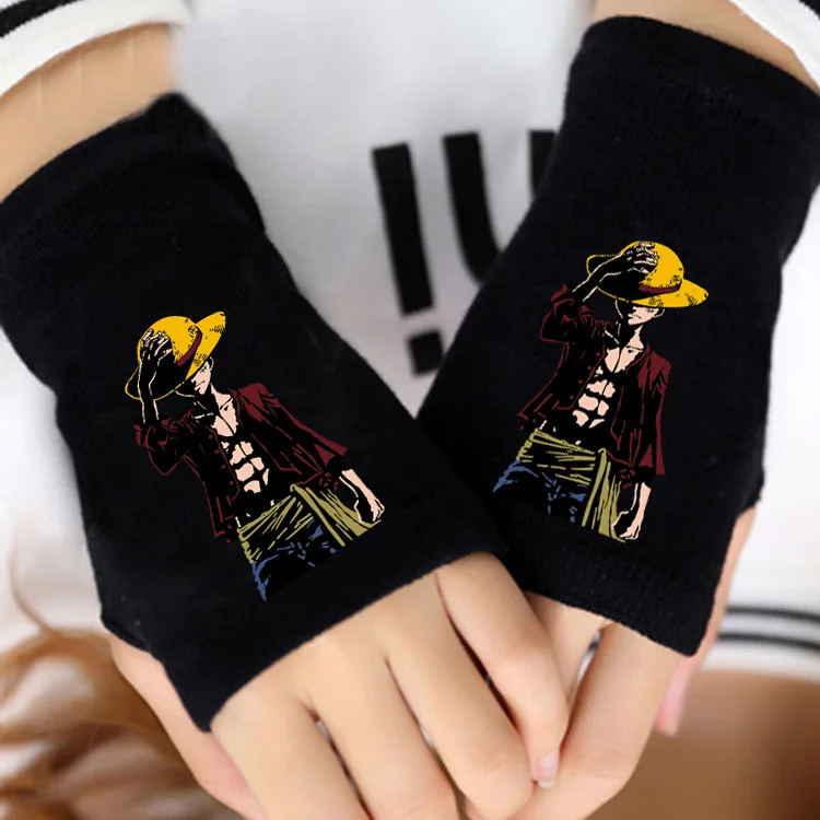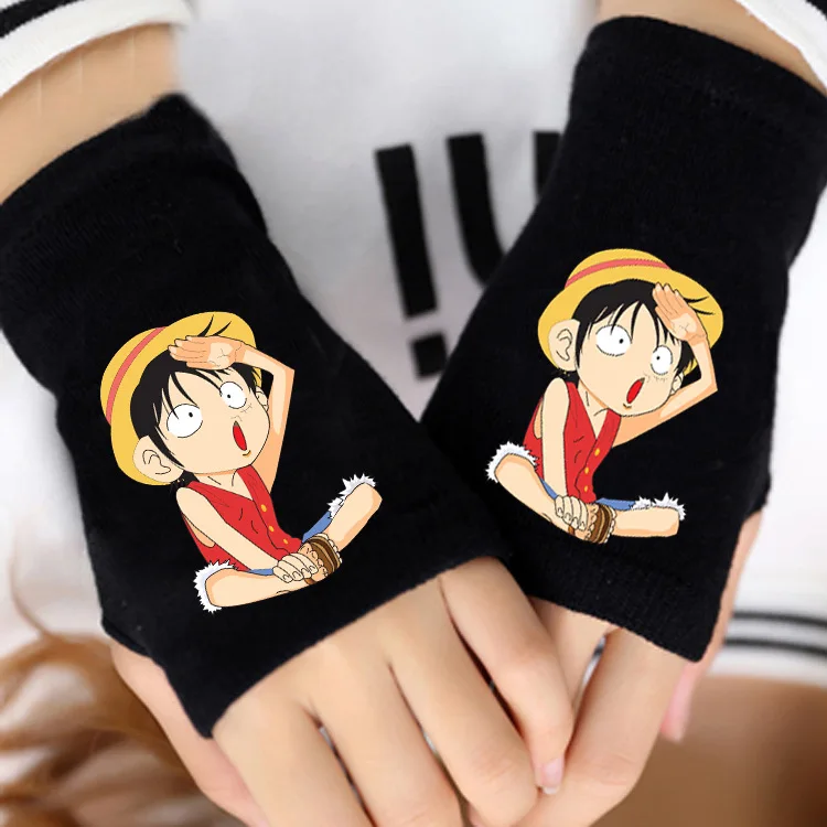 Цельнокроеные вязаные перчатки с принтом аниме Луффи и Закон Чоппер хлопковые