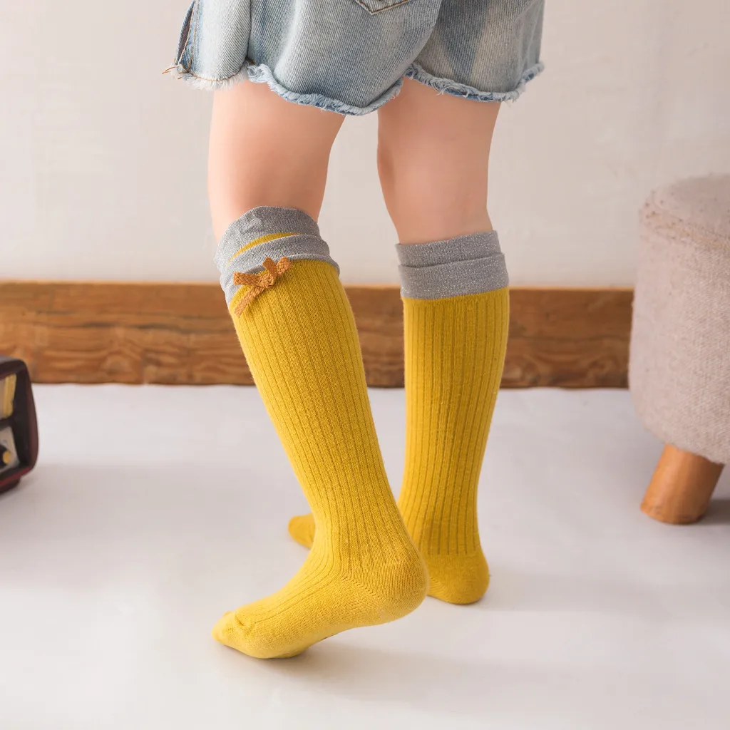 Детские однотонные Нескользящие вязаные длинные носки для маленьких мальчиков и девочек гольфы