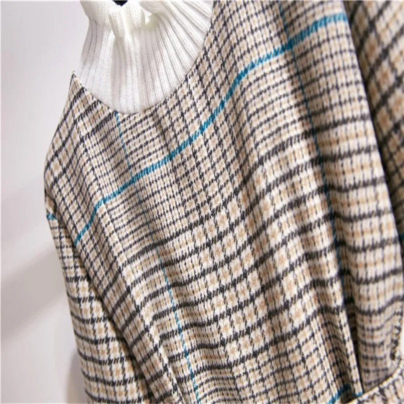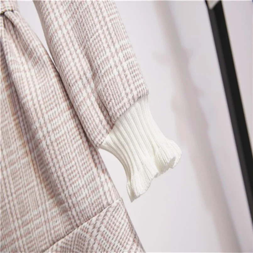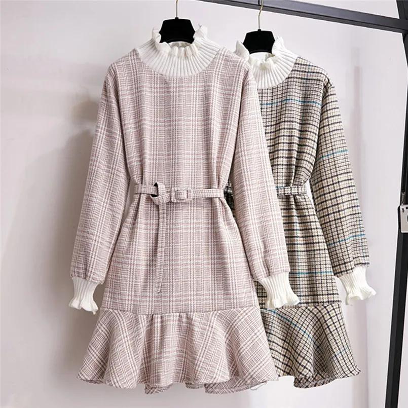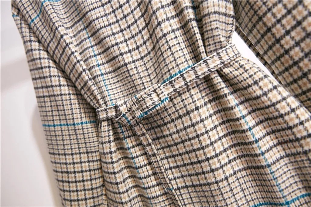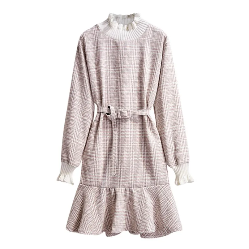 Модное женское осенне-зимнее приталенное платье, элегантное женское Повседневное платье в клетку с длинными рукавами и эластичным поясом, Бандажное платье