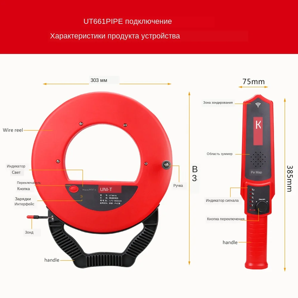 Параметры Модель: UT661A/B Пусковая установка: Поддержка Длина сигнальной линии: 20 м (UT661A)/30 м (UT661B) Приемник: Поддержка Расстояние измерения:> 50 см Ток передатчика: ток выключения <2uA, рабочий ток 230-310mA Ток приемника: ток выключения <2uA, рабочий ток <40 мА Максимальный рабочий ток 150-450ма (расстояние 1 см) Заряжающийся: Поддержка Зарядный ток никель-металл: 450-550mA Расстояние 1 см тестовый выходной звук:> 93 дБ Расстояние 0,5 см тестовый выходной звук:> 75 дБ Аккумулятор передатчика: Встроенный литиевый аккумулятор (3,7 в 1800 мАч) Аккумулятор приемника: литиевая батарея BL-5C (3,7 в 1120 мАч) Время использования: около 10 часов Измеряемый материал трубы: пластиковая трубка, металлическая трубка Рабочая температура и влажность:-10℃-50℃ 10-80% RH Температура и влажность хранения:-20℃-50℃ 10-70% RH Особенности 1. 100% Новинка и высокое качество 2. Он может эффективно измерять точки засорения железные трубы и металлические трубы, что может лучше избежать металлических помех и найти точку подключения удобно и быстро. 3. 2 в 1: кабель для зарядки или передачи данных со штекером для одновременной зарядки приемники и передатчики 4. Зонд может быть заменен, водонепроницаемый и точное обнаружение и высокая чувствительность Посылка включает в себя 1 х хост Руководство пользователя (1 шт.) 1 х трубный Соединительный зонд Зарядный кабель-1 шт.; 1 х 502 сильный клей Для аккумулятора (1 шт.) 3303265