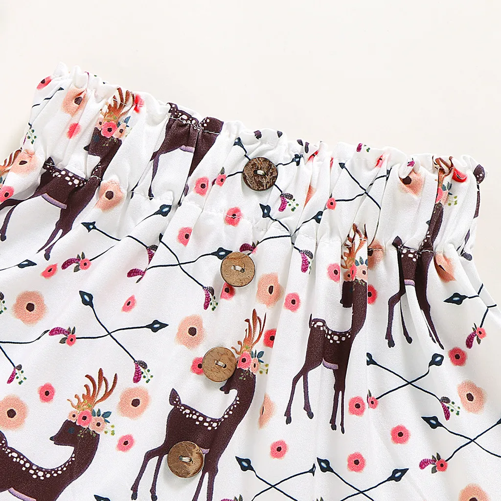 Футболка с принтом рождественского оленя для маленьких девочек, топы + юбки с мультипликационным рисунком, комплекты одежды