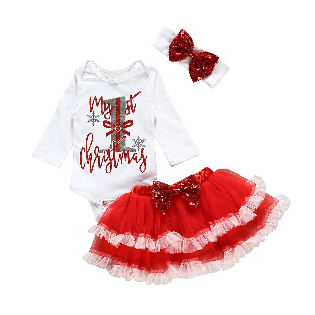 Рождественский комбинезон с надписью для новорожденных девочек; юбка-пачка; повязка на голову