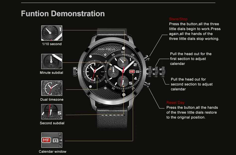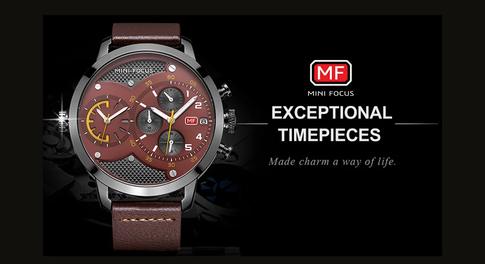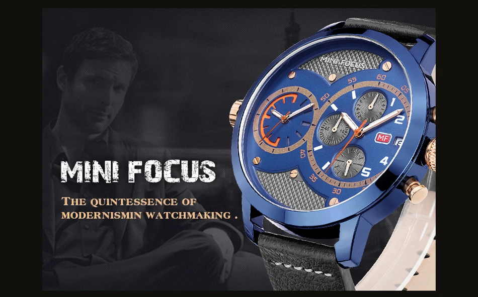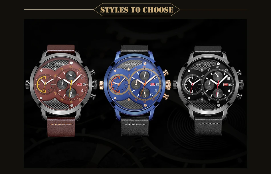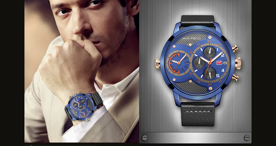 Кварцевые часы MINIFOCUS с несколькими часовыми поясами, мужские кожаные повседневные наручные часы, мужские часы с большим циферблатом, хронографом, датой, montre homme
