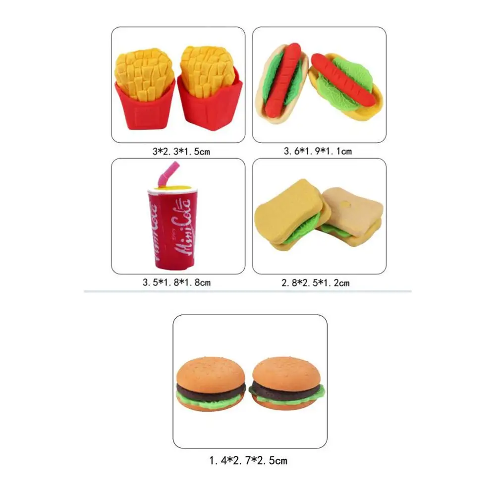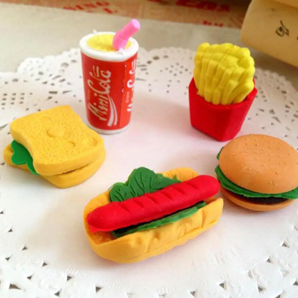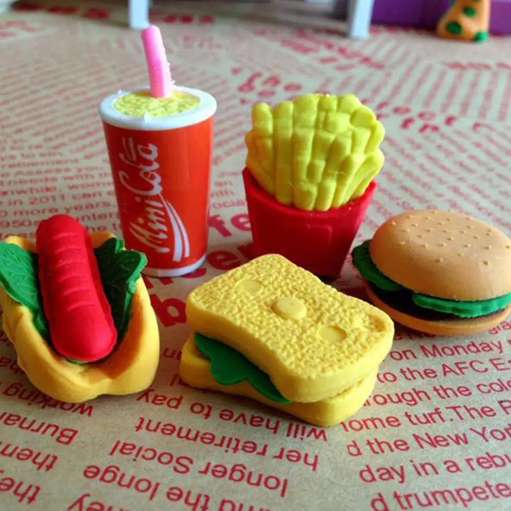 6 * ластики (гамбургер, картофель фри, хот-дог, сэндвич и напитки, случайный цвет)