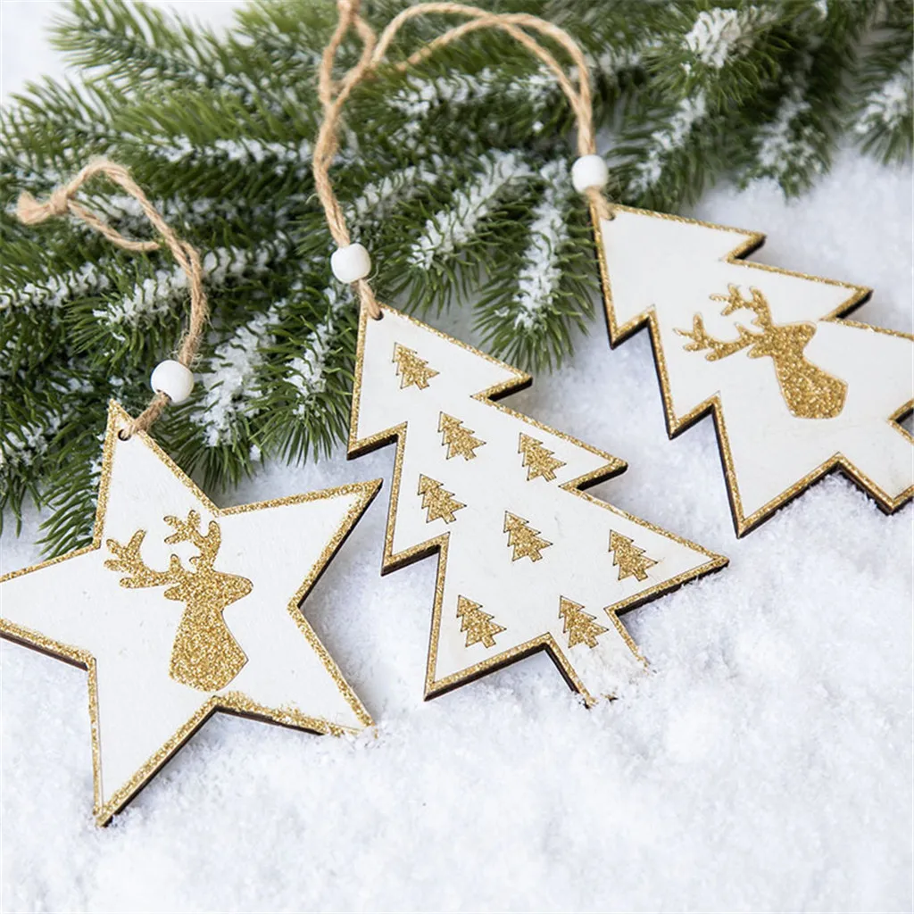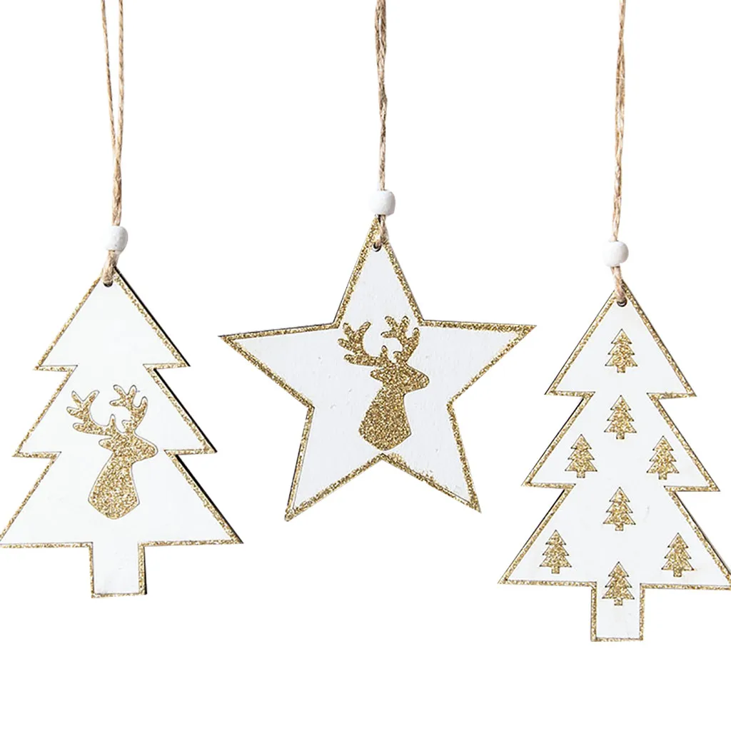 Деревянный Мини С рисунком рождественской елки подвески, подвесные украшения Рождественский Декор для дома
