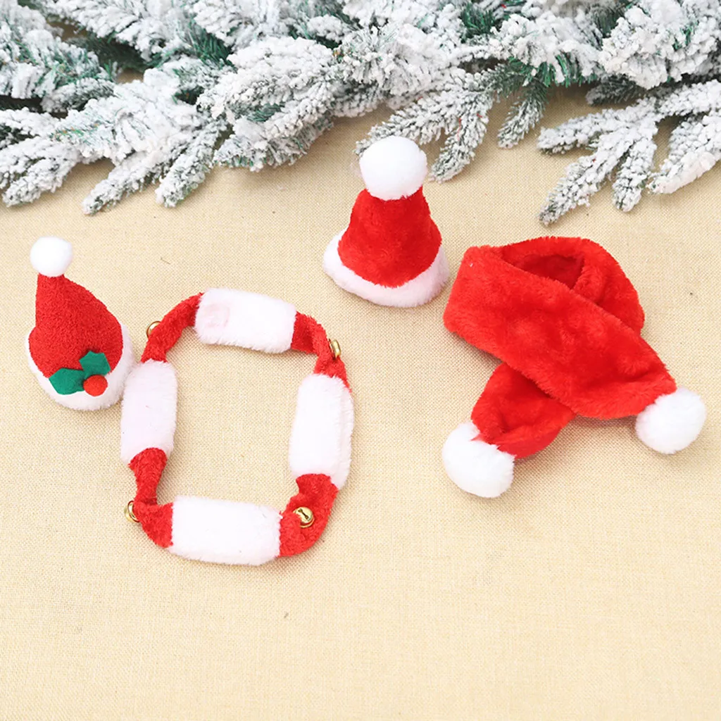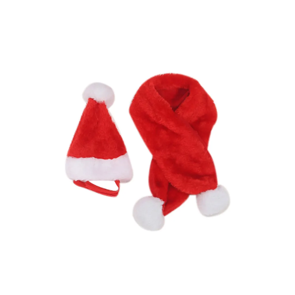 Кошка Собака шляпа красный шарф Рождественский праздничный костюм комплект одежды с маленькими животными