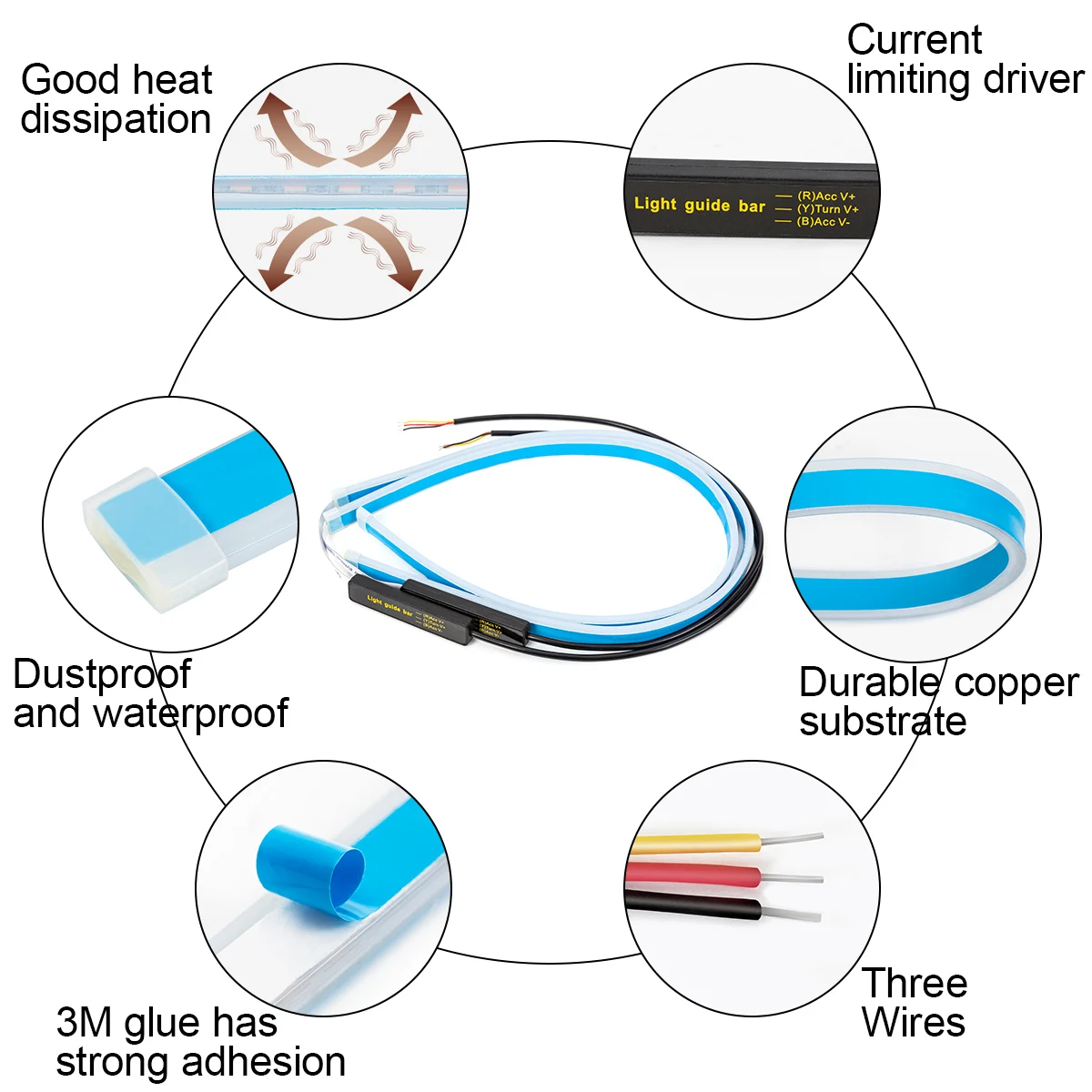 Автомобильные лампы TACARS, 1 шт., DRL светодиодсветодиодный дневные ходовые огни, аксессуары для стайлинга автомобиля, указатель поворота, лента, фара в сборе Особенность: Название продукта: Автомобильные светодиодные дневные ходовые огни Материал: силикон светодиодный Входное напряжение: 12 В Подходит: универсален для всех автомобилей Особенность: водонепроницаемый, плавный поворот Рабочая температура: -40 ~ 50 по Цельсию Толщина светильник: 0,3 см (около 0,12 дюйма) Светильник: 30 см/45 см/60 см (около 11,81 дюйма/17,72 дюйма/23,62 дюйма) Цвет (опция покупки): 1. Белый переход в желтый 2. Ледяной Синий переход в желтый 3. Переход красного цвета в желтый 4. Синий переход в желтый 5. Розовый переход в желтый 6. Однотонный Дневной свет (без поворота) Ангельские глазки, Головной фонарь поворосветильник. Красный провод для белого светильник, желтый провод для желтого светильник, черный провод для отрицательного провода. (При движении свет белый, при этом при повороте горит постоянно желтым) Установка 1, наклейте на внешнюю фару 2, проводное соединение Красный провод: подключение к фаре или ACC (+) Черный провод: подключение к батарее отрицательное (-) Желтый провод: подключение к сигналу поворота (+) Однотонные планки не имеют функции рулевого управления Посылка: шт./заказ Примечание: 1. Изображения приведены только для справки. Преобладает фактический товар. 2. Ваше удовлетворение-наша главная забота. Пожалуйста, свяжитесь с нами, чтобы лучше решить любую проблему, прежде чем оставлять нейтральный или отрицательный отзыв. Большое спасибо!