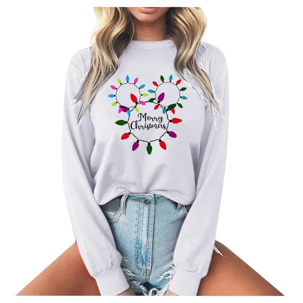 Для женщин Печать след Повседневная Толстовка с круглым вырезом и длинным рукавом