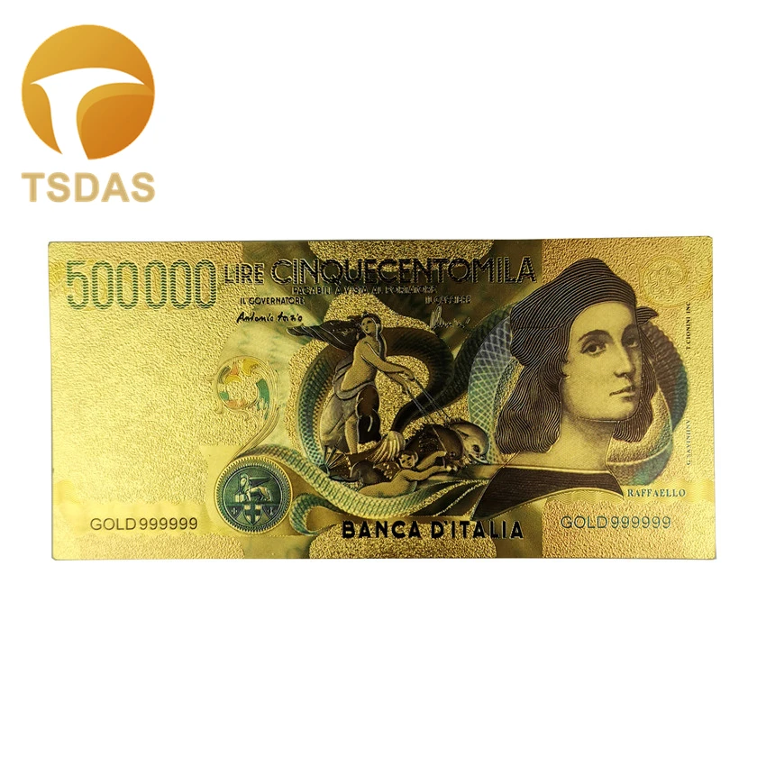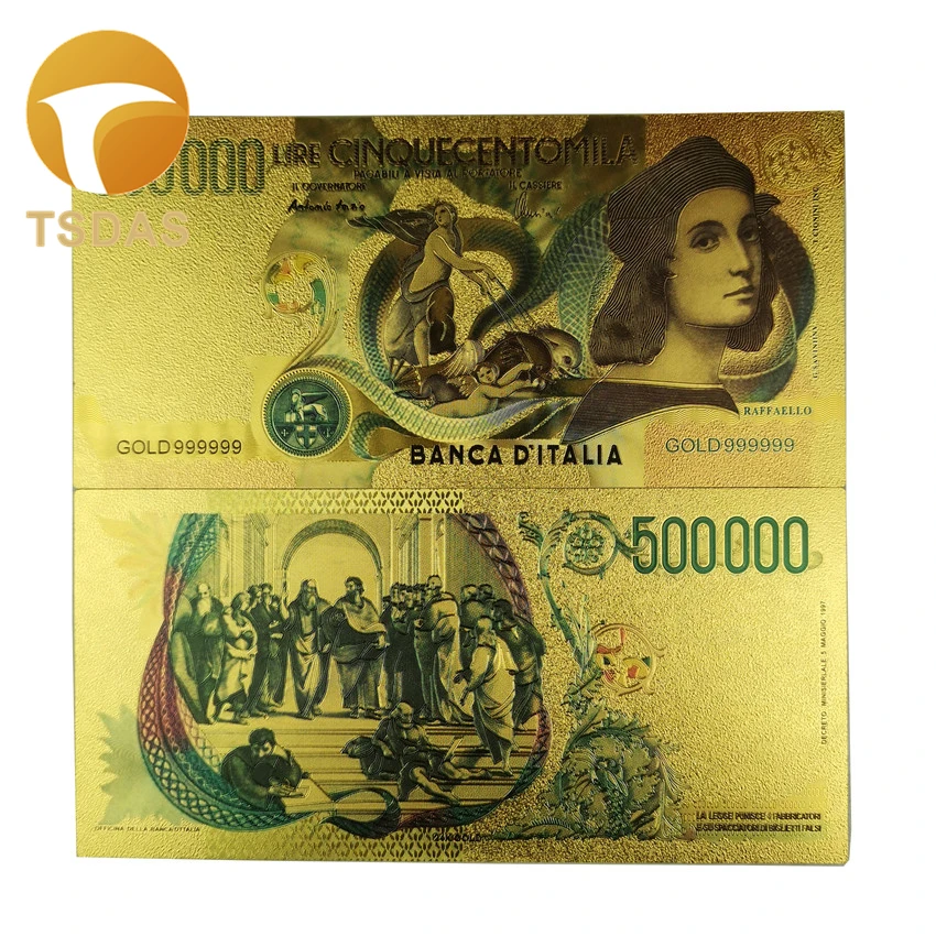 | Название:10 шт Цвет итальянская Золотая банкнота 500000 лир 24k Золотая нотка поддельные деньги для сувенирных подарков |