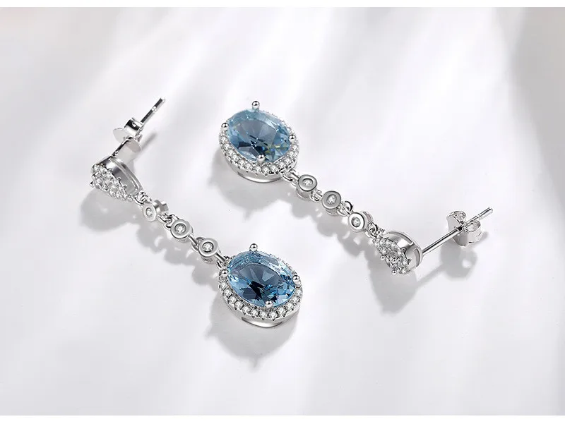 Женские серьги-подвески из серебра 925 пробы, Винтажные Ювелирные изделия с овальным синим фианитом, длинные серьги-подвески, темпераментные ювелирные изделия CCE648