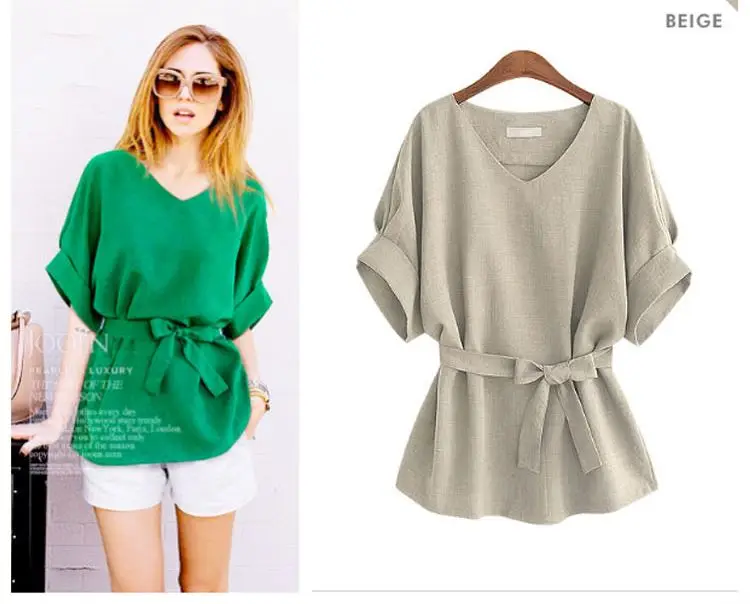 2020 летняя рубашка размера плюс 5XL женская льняная шифоновая блузка с коротким рукавом зеленый бант свободные винтажные женские топы blusas mujer AD9