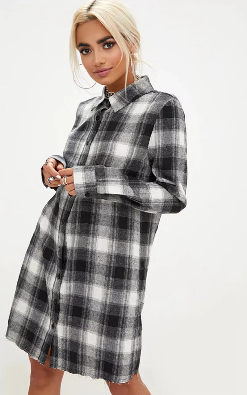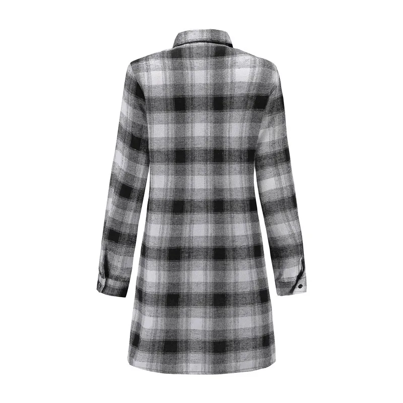Осенняя Новая модная женская рубашка с отложным воротником и длинным рукавом, свободные рубашки средней длины в клетку, повседневные клетчатые блузки для женщин 2019