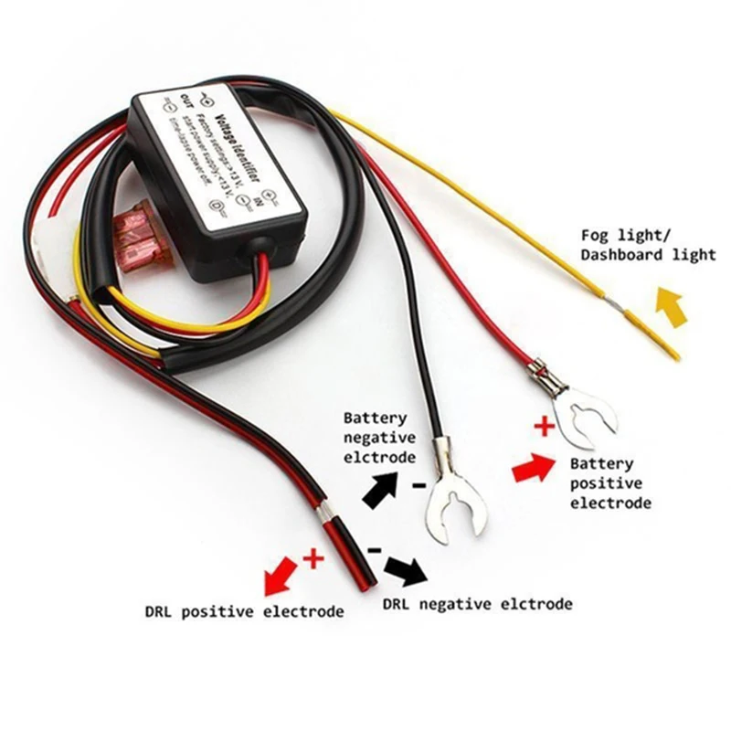 Желтая проволока для подключения к фарам (или фонарикам на приборной панели), когда фары или лампы на приборной панели будут включены, светодиодный свет дневных ходовых огней будет сокращен наполовину.