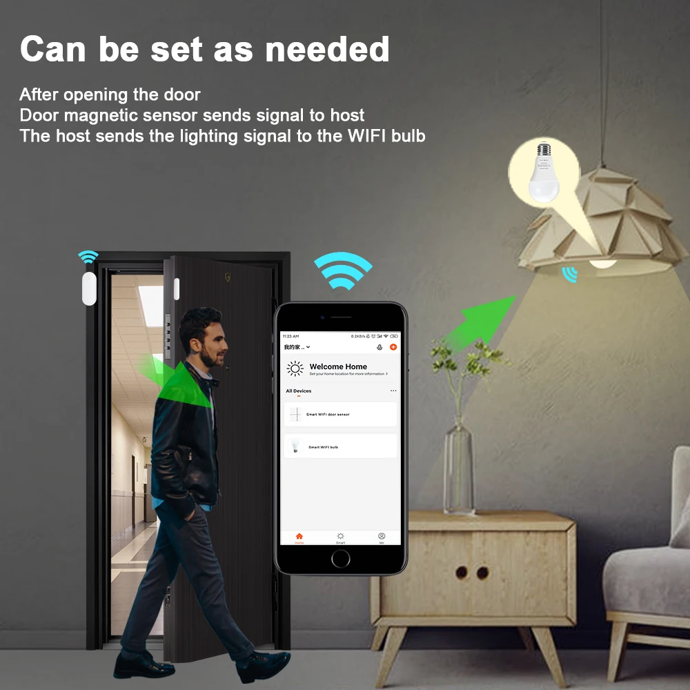 Эта светодиодная умная лампа поддерживает приложение Tuya. Вы можете использовать свой телефон для дистанционного управления включенным или выключенным светодиодом, а также вы можете установить различные цвета и яркость. В то же время, он также может быть настроен на работу с другими устройствами граффити, такими как автоматическое включение света при открывании двери.