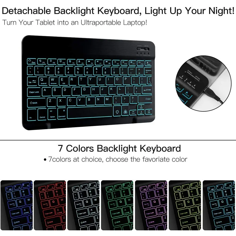 All-in-one Design: Protective Case Cover + Built-in Wireless Bluetooth Keyboard, it is extremely convenient to carry your tablet to office and travel.